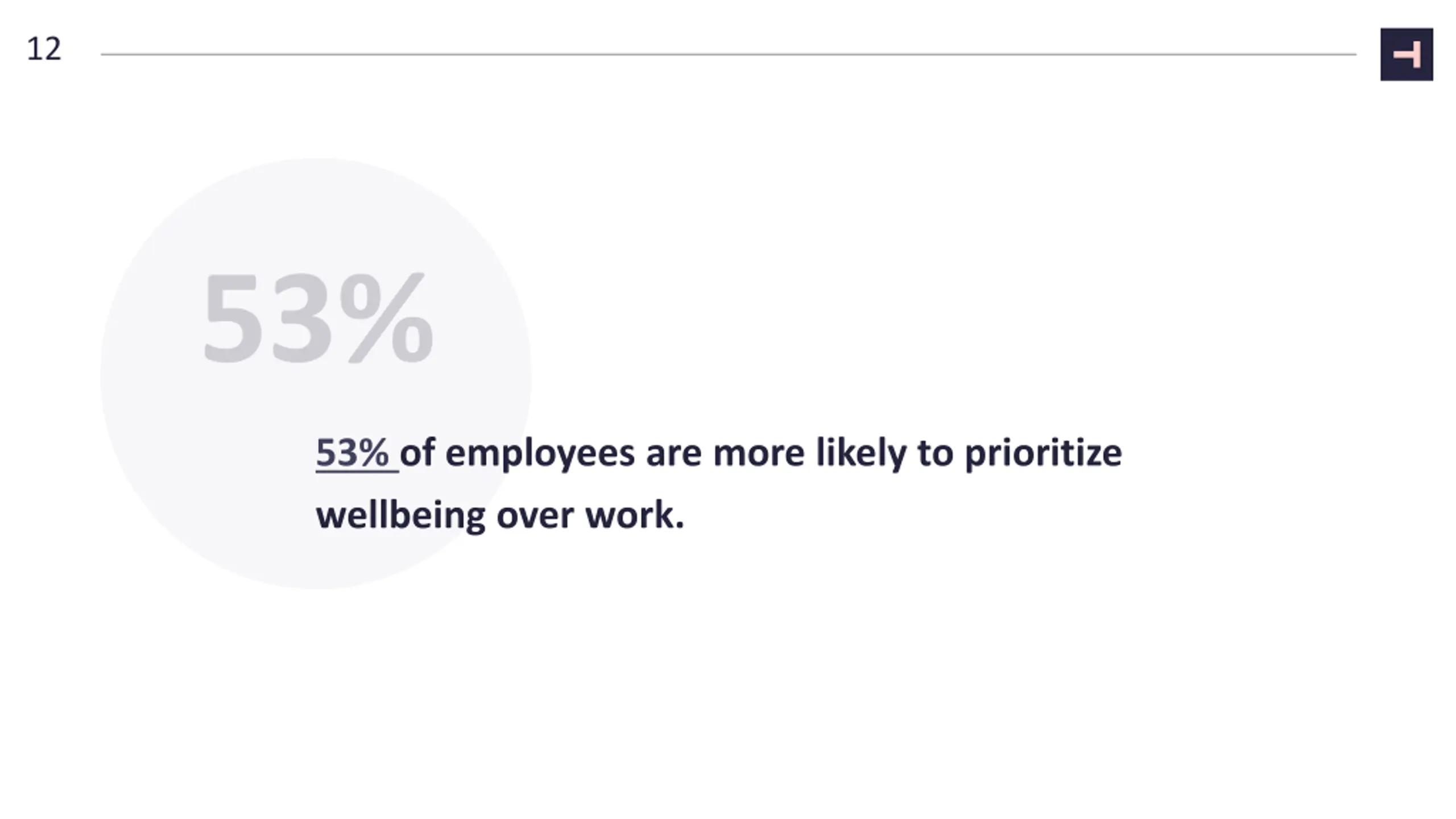 12 53% of employees are more likely to prioritize wellbeing over work.