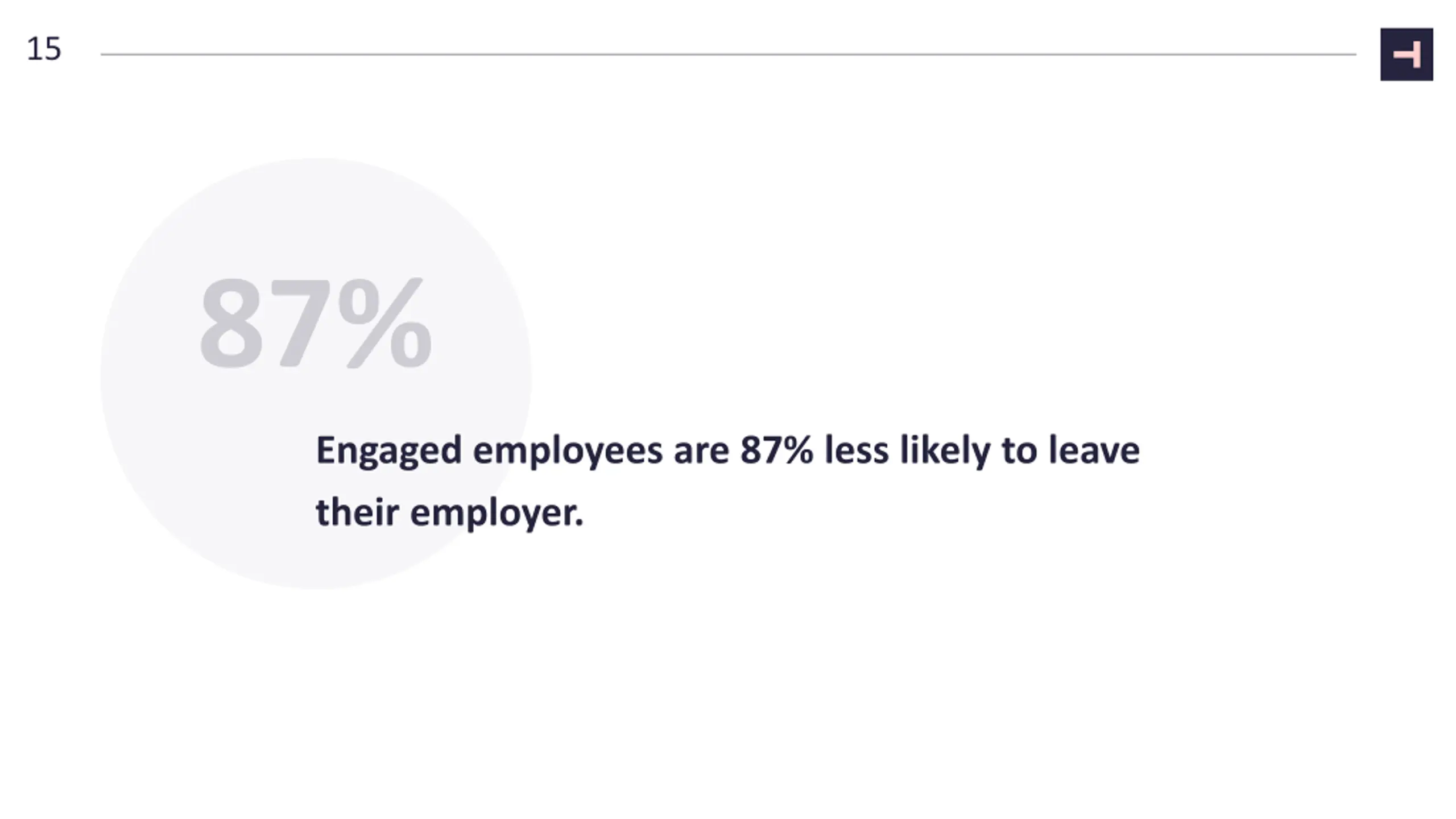 15 Engaged employees are 87% less likely to leave their employer.