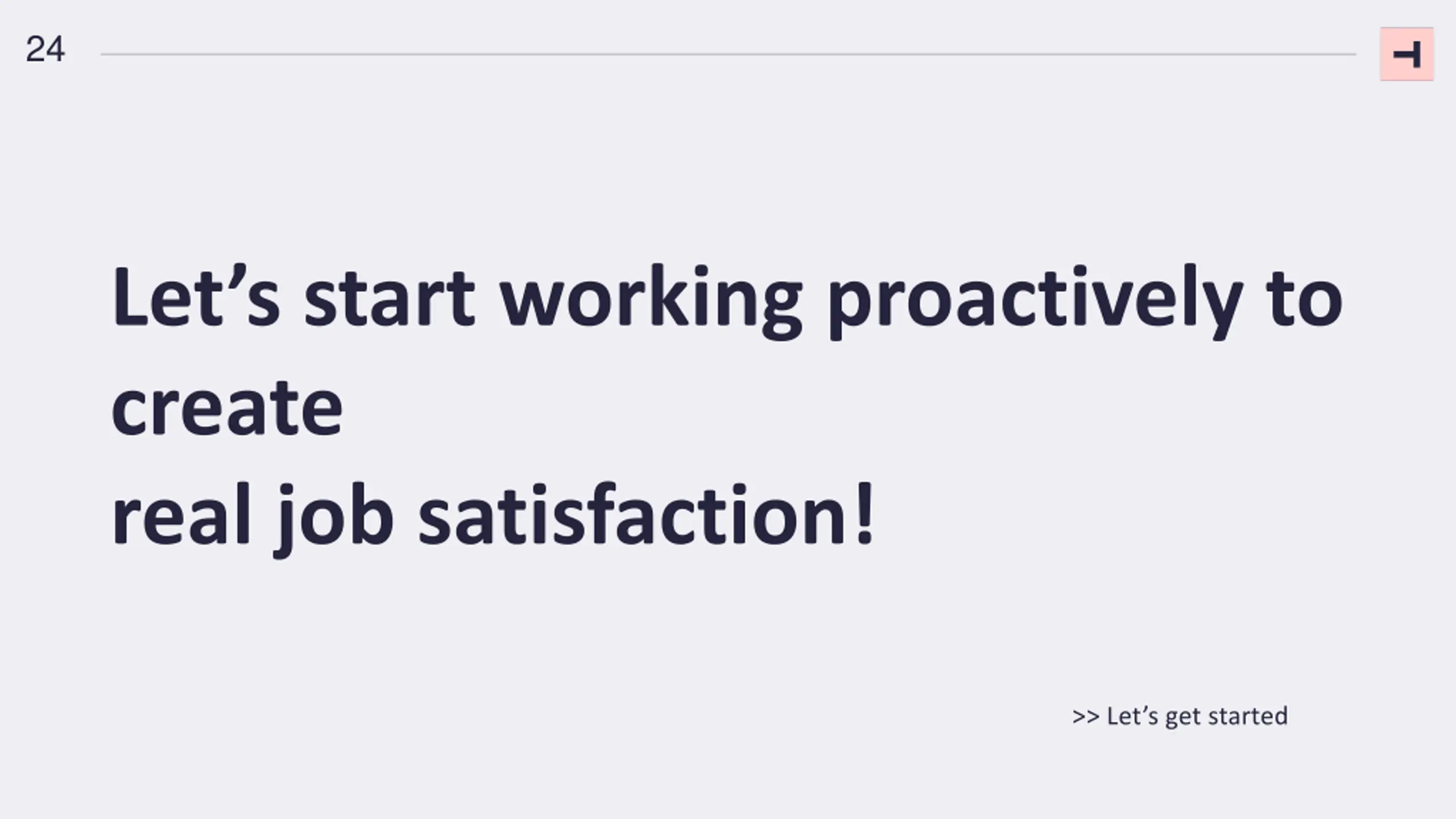 24 Let s start working proactively to create real job satisfaction! >> Let s get started
