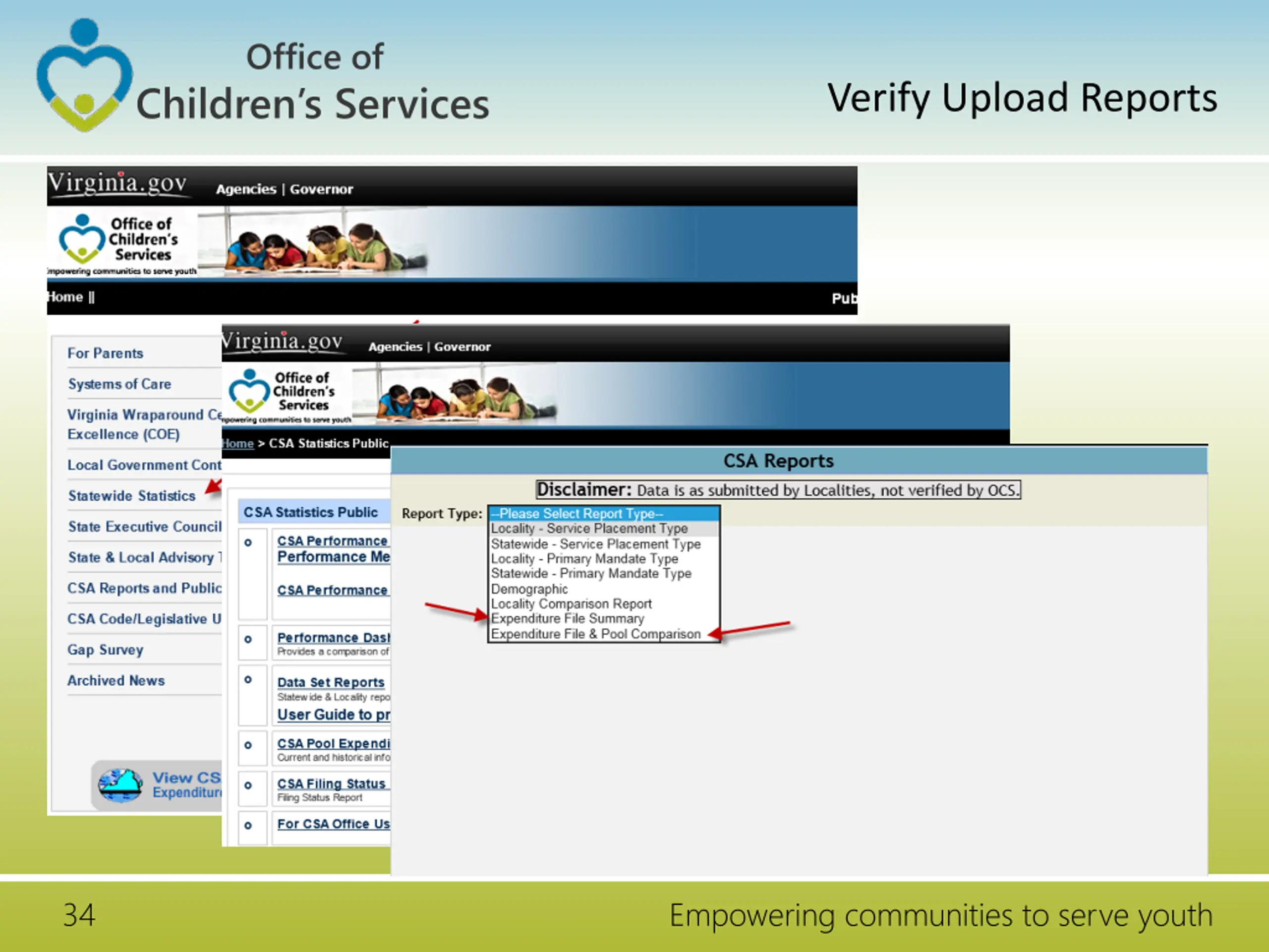 Office of Children s Services Verify Upload Reports 34 Empowering communities to serve youth