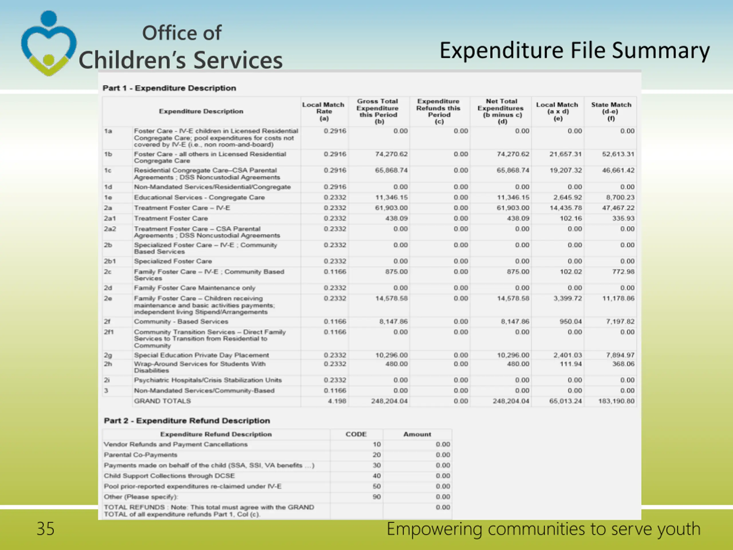 Office of Expenditure File Summary Children s Services 35 Empowering communities to serve youth