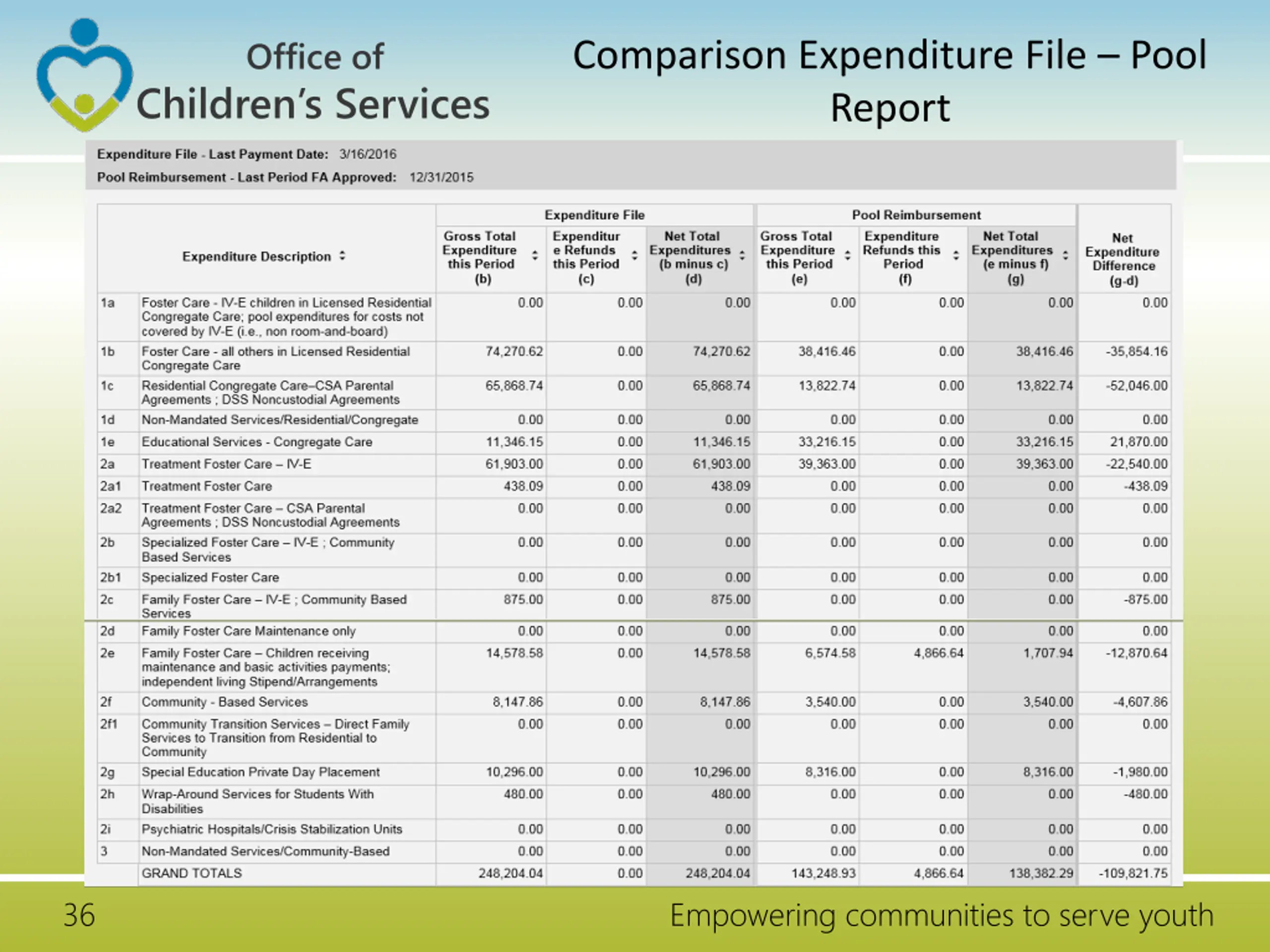 Office of Comparison Expenditure File Pool Report Children s Services 36 Empowering communities to serve youth