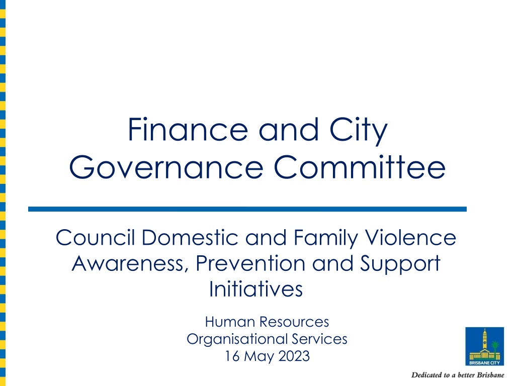 Finance and City Governance Committee Council Domestic and Family Violence Awareness, Prevention and Support Initiatives Human Resources Organisational Services 16 May 2023