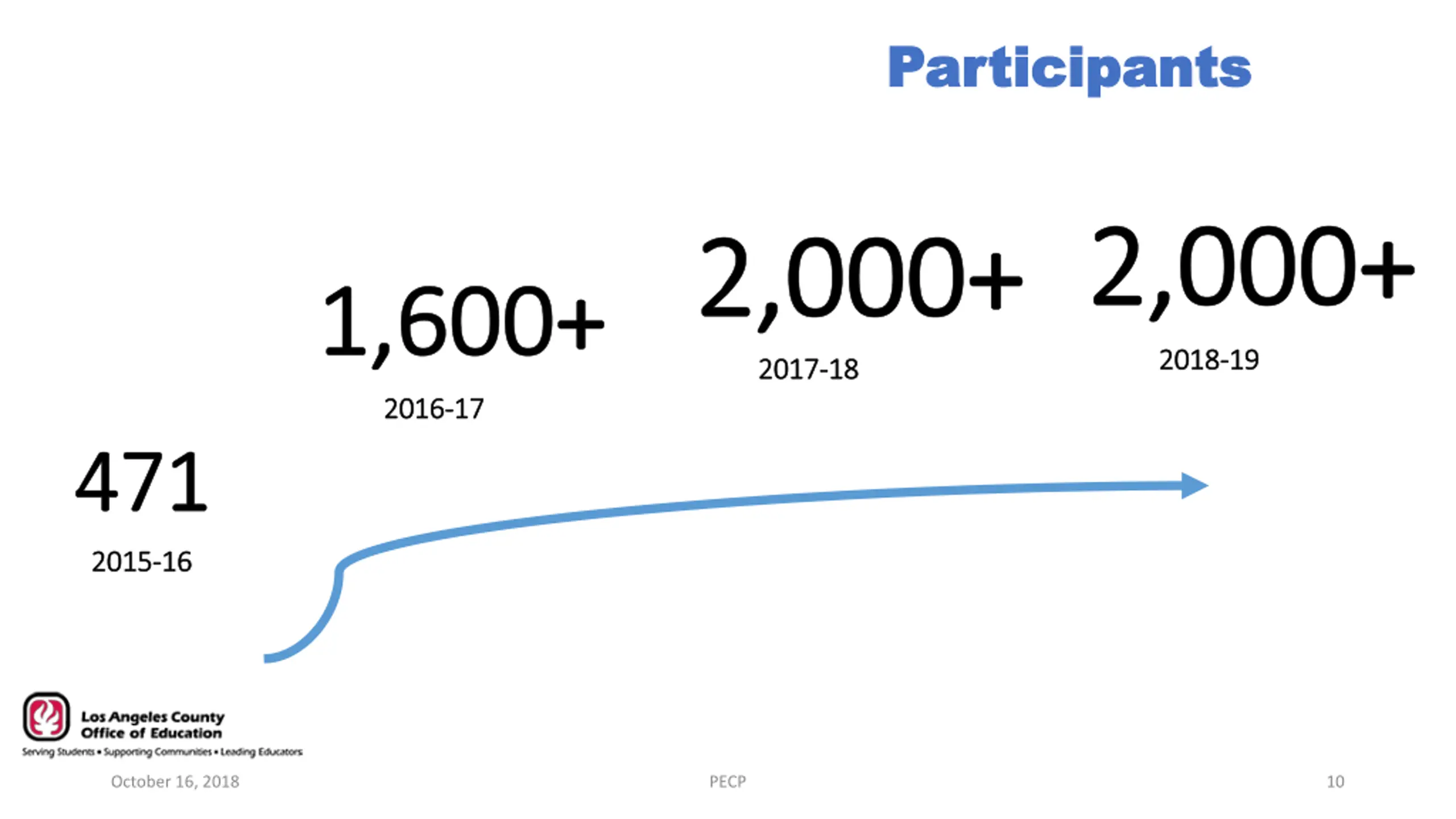 Participants Participants 2,000+ 2,000+ 2018 2018- -19 19 2,000+ 2,000+ 2017 2017- -18 18 1,600+ 1,600+ 2016 2016- -17 17 471 471 2015 2015- -16 16 October 16, 2018 PECP 10
