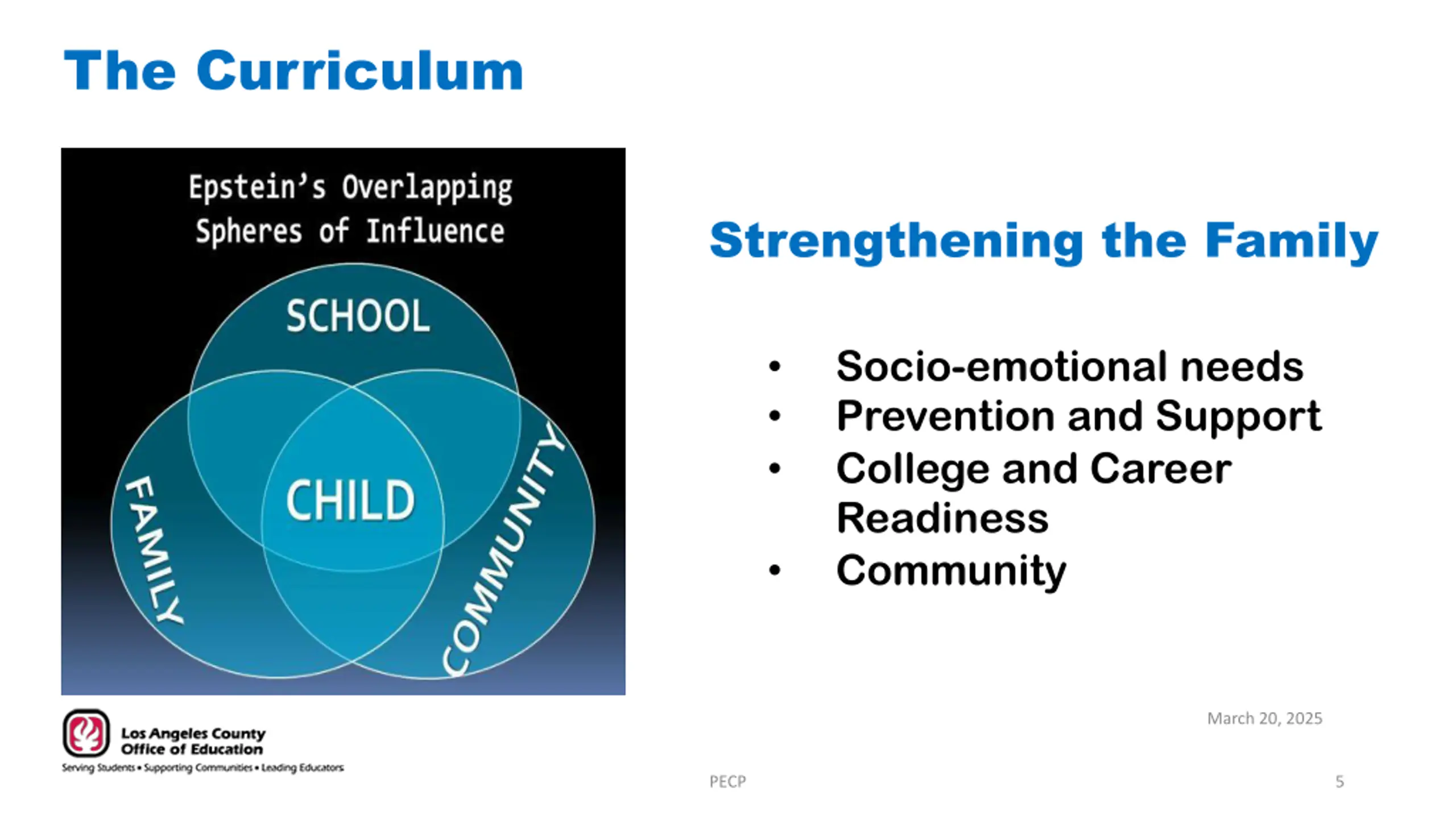 The Curriculum Strengthening the Family Socio-emotional needs Prevention and Support College and Career Readiness Community March 20, 2025 PECP 5