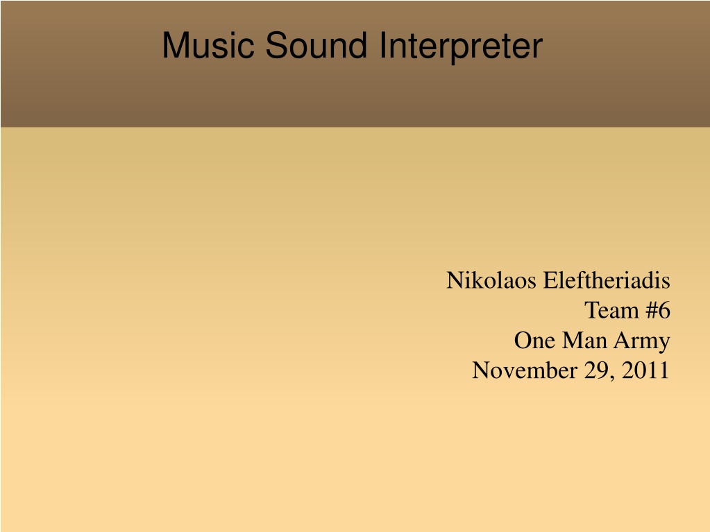 Music Sound Interpreter Nikolaos Eleftheriadis Team #6 One Man Army November 29, 2011