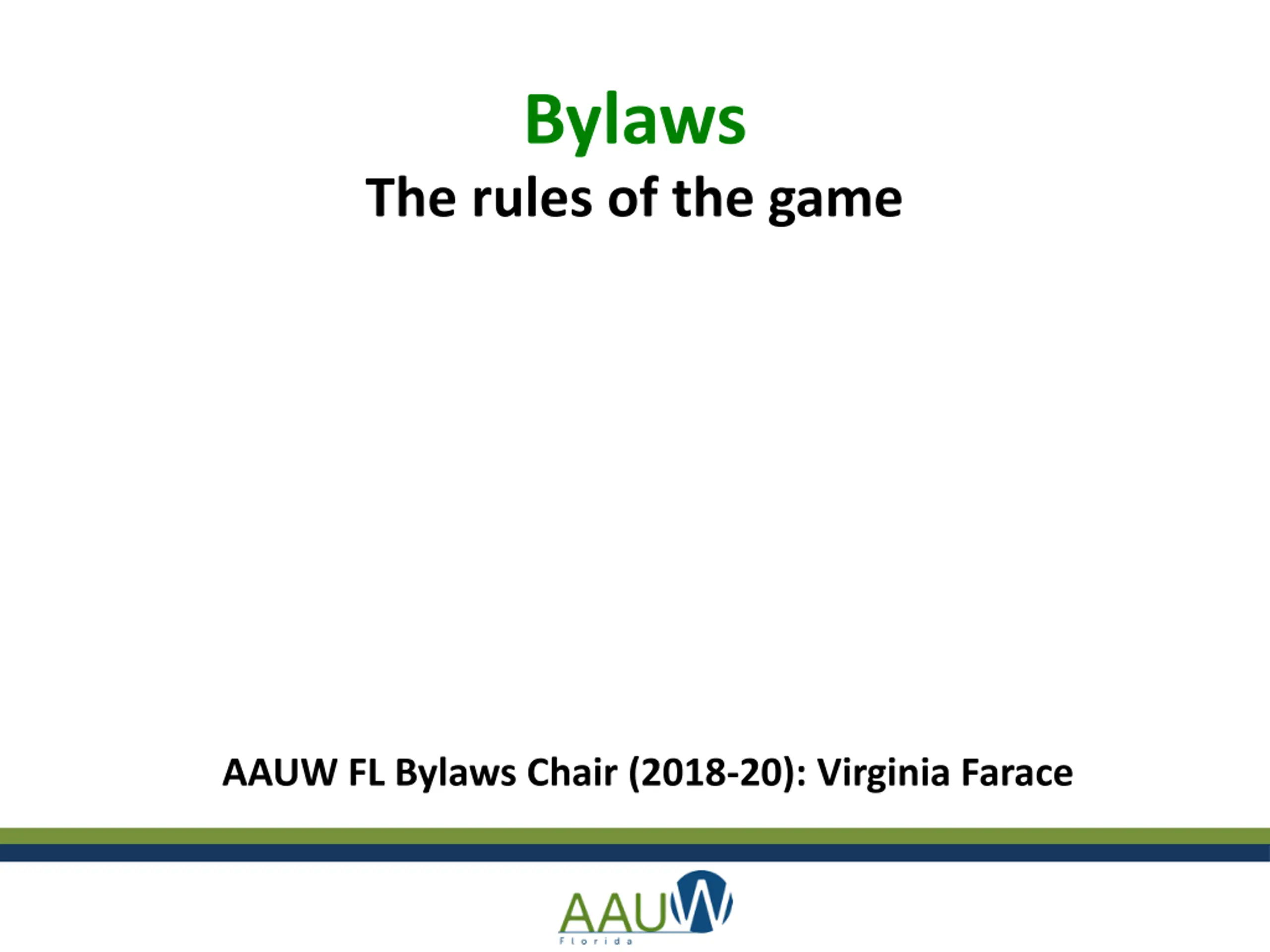 Bylaws The rules of the game AAUW FL Bylaws Chair (2018-20): Virginia Farace