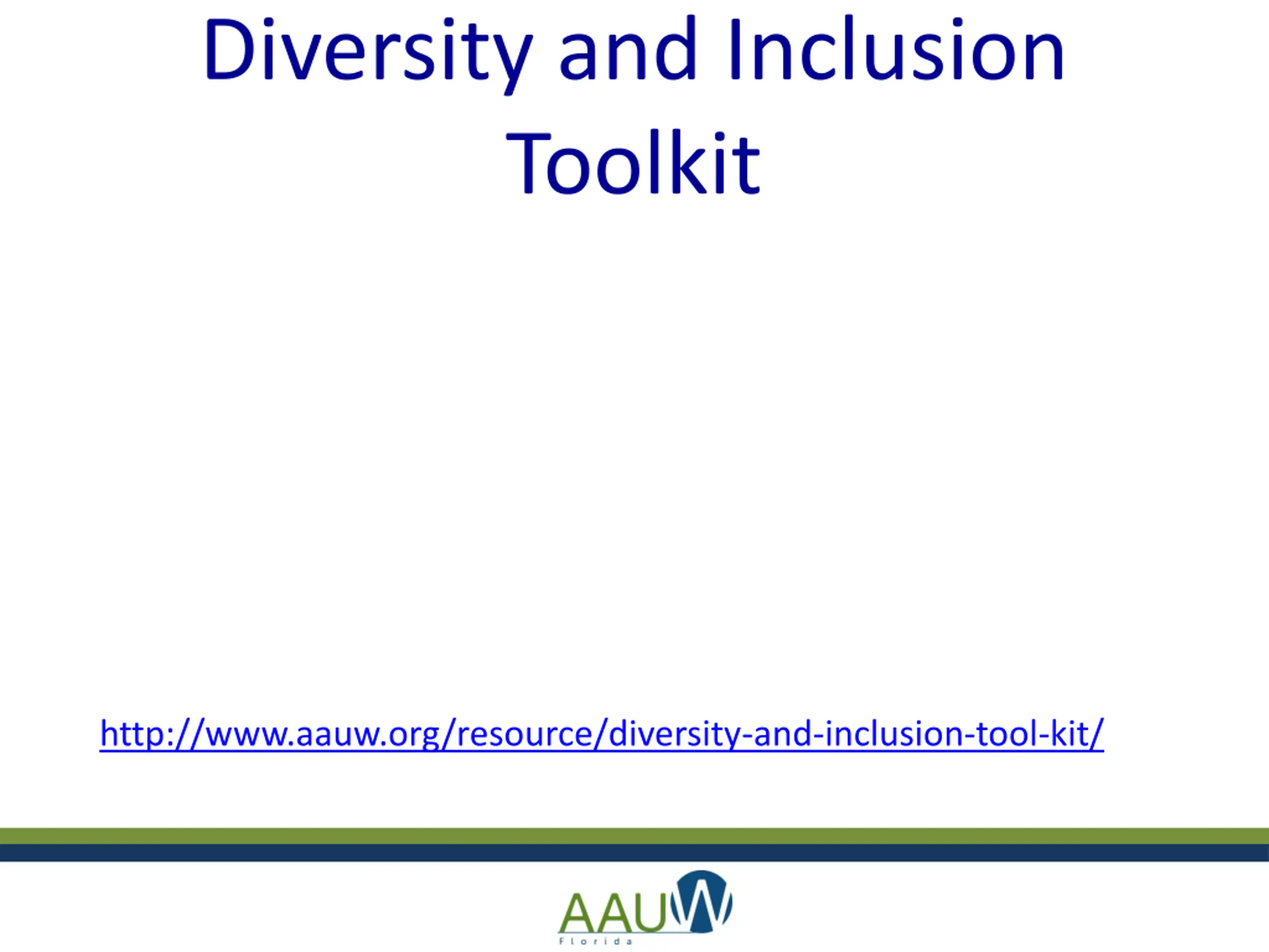 Diversity and Inclusion Toolkit http://www.aauw.org/resource/diversity-and-inclusion-tool-kit/