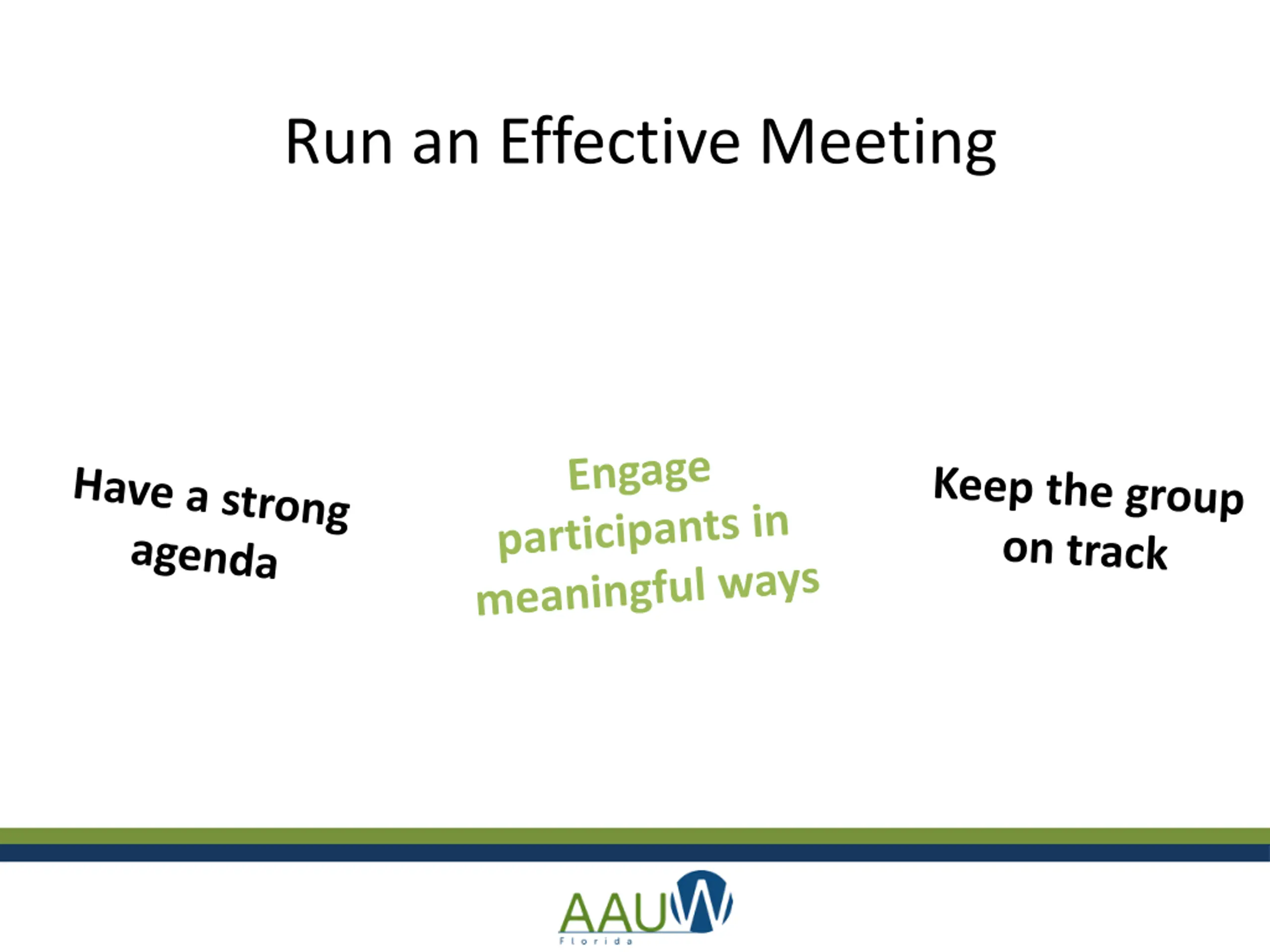 Gain valuable insights on leadership, advocacy, and effective communication from the AAUW Florida Convention 2018. Discover tips on setting inclusive goals, staying updated, running efficient meetings, and more to enhance your leadership skills.
