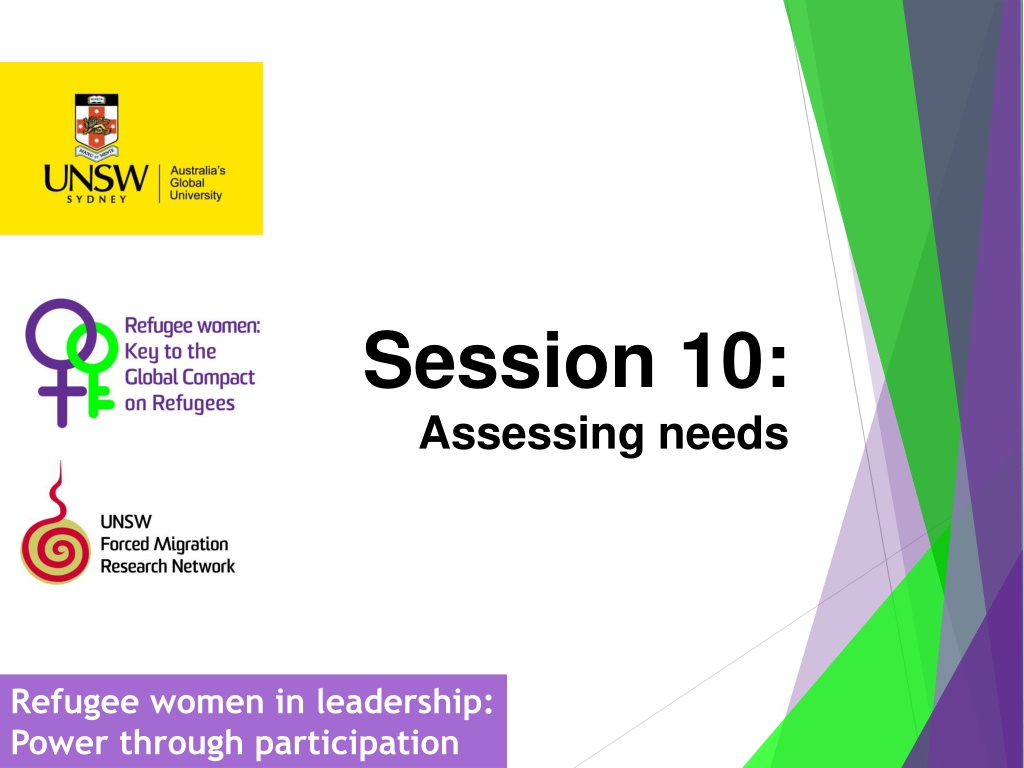 Session 10: Assessing needs Refugee women in leadership: Power through participation