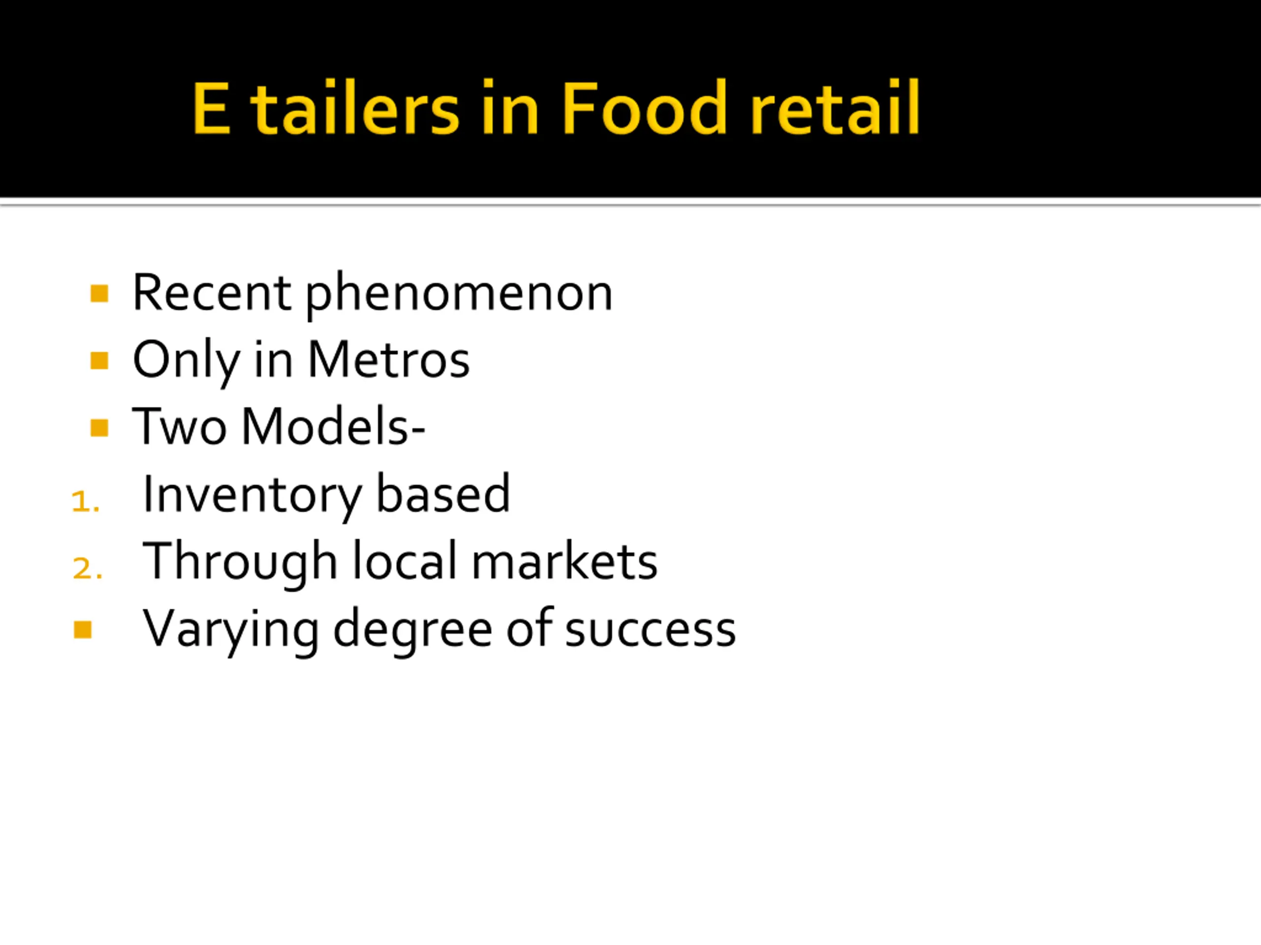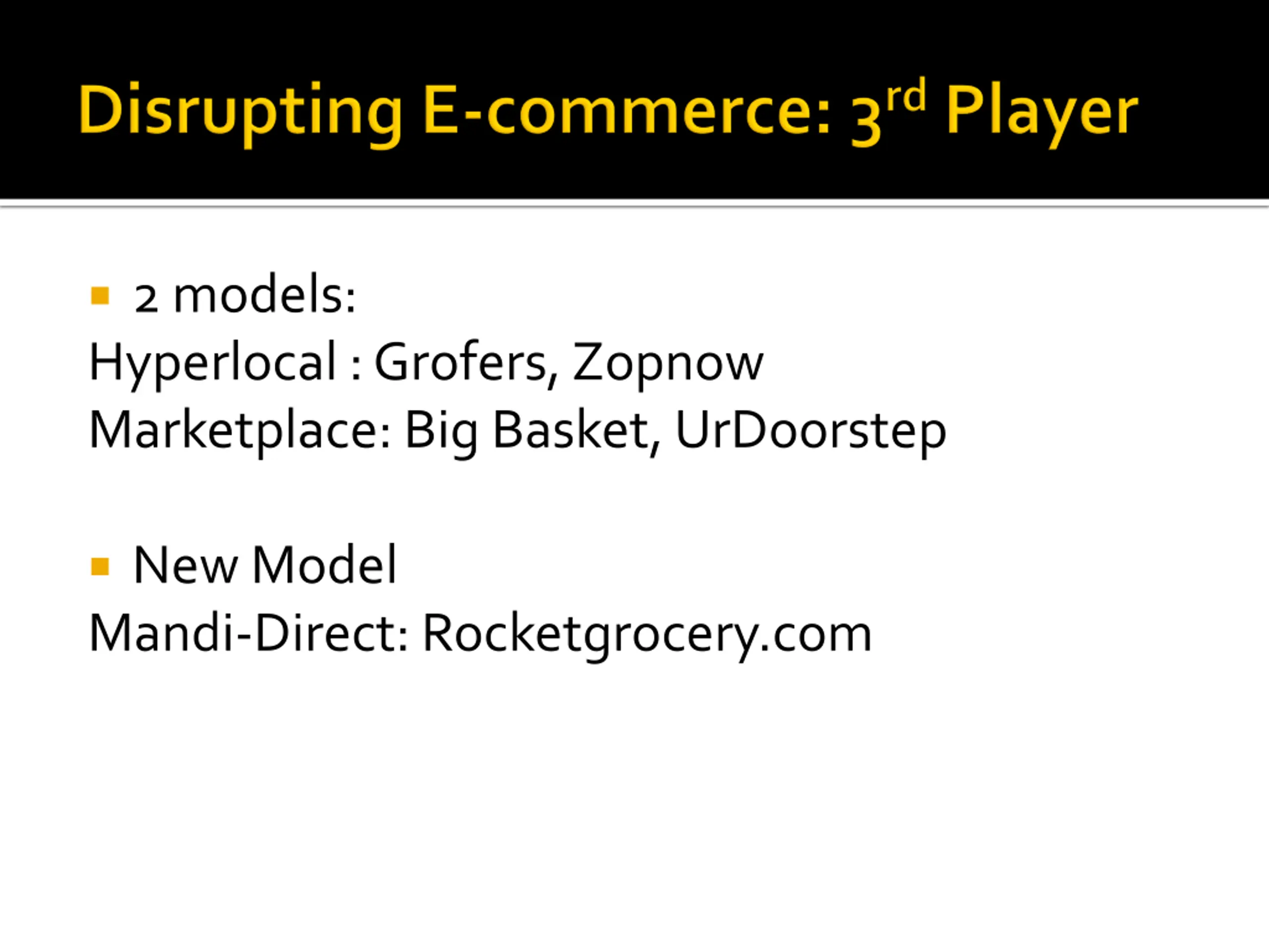 2 models: Hyperlocal : Grofers, Zopnow Marketplace: Big Basket, UrDoorstep New Model Mandi-Direct: Rocketgrocery.com