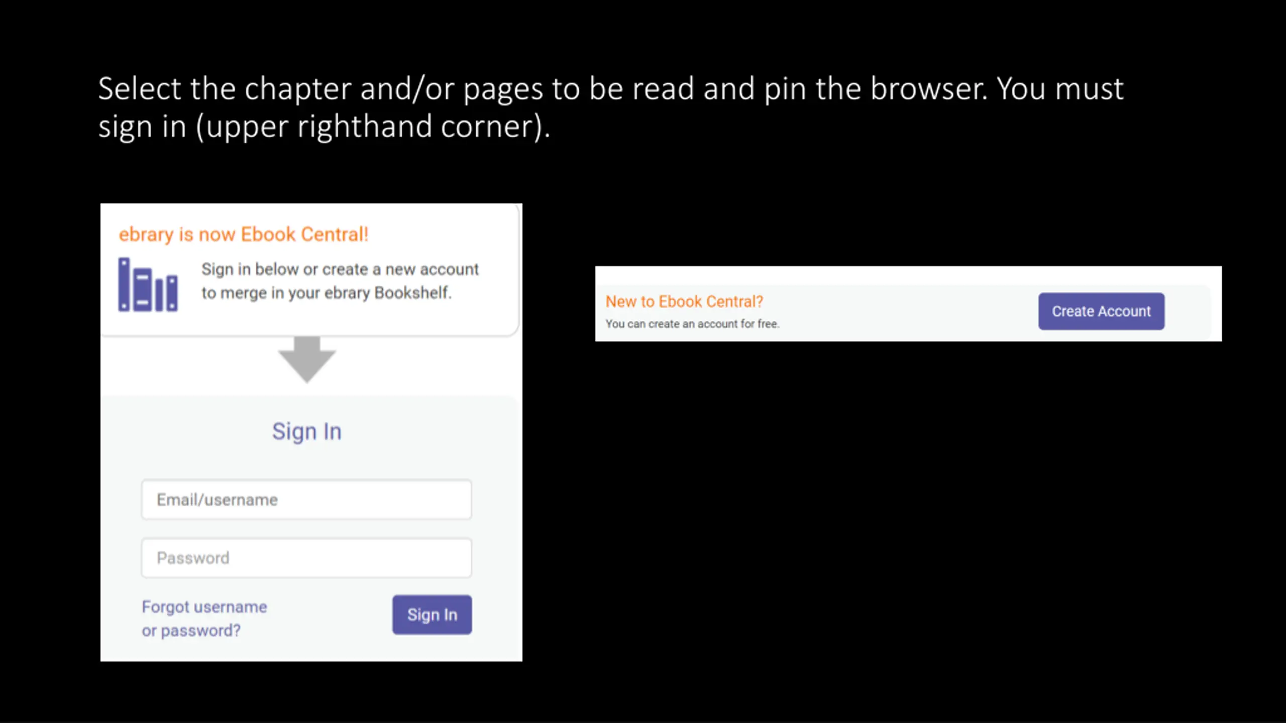 Select the chapter and/or pages to be read and pin the browser. You must sign in (upper righthand corner).