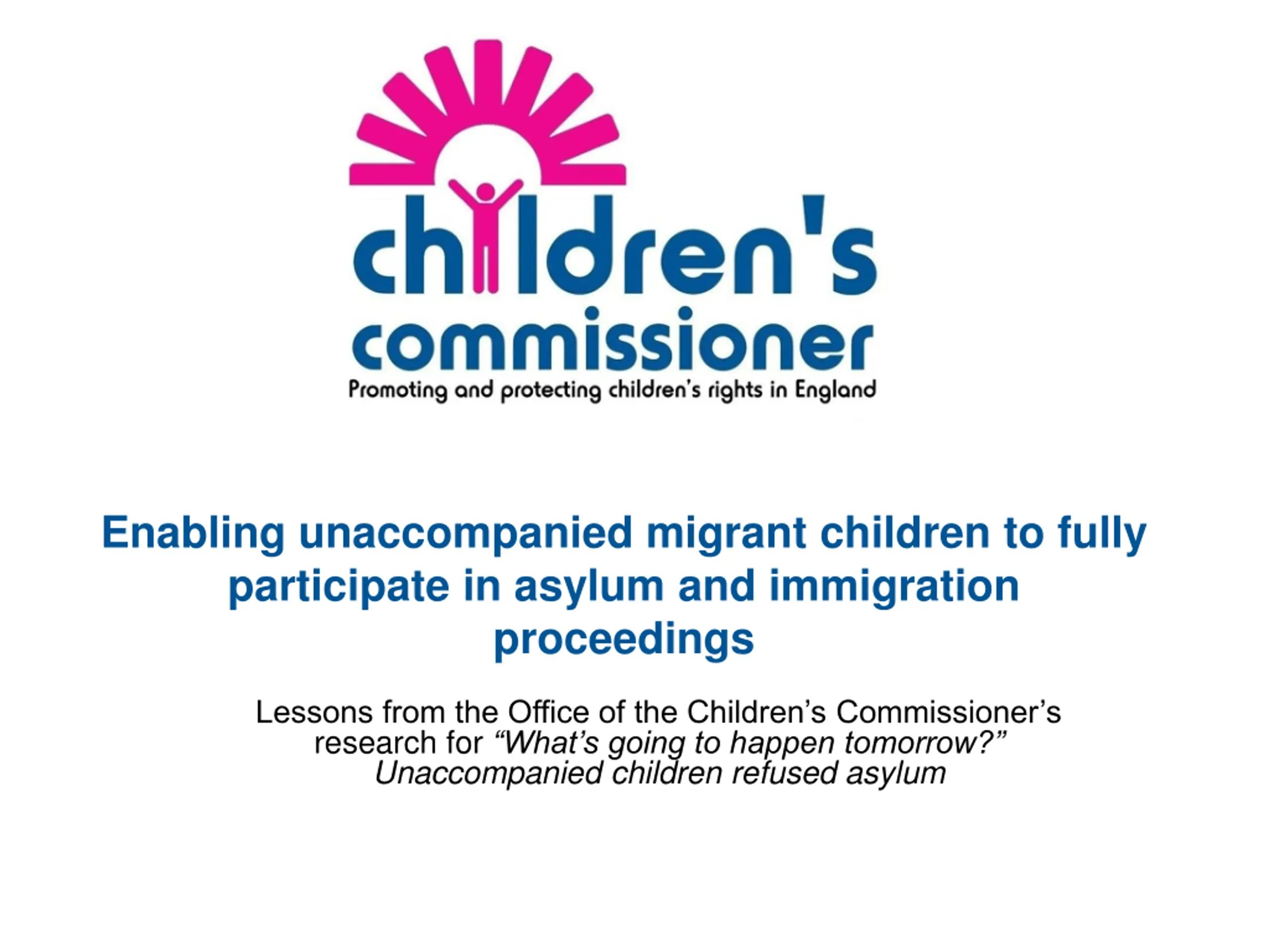 Enabling unaccompanied migrant children to fully participate in asylum and immigration proceedings Lessons from the Office of the Children s Commissioner s research for What s going to happen tomorrow? Unaccompanied children refused asylum