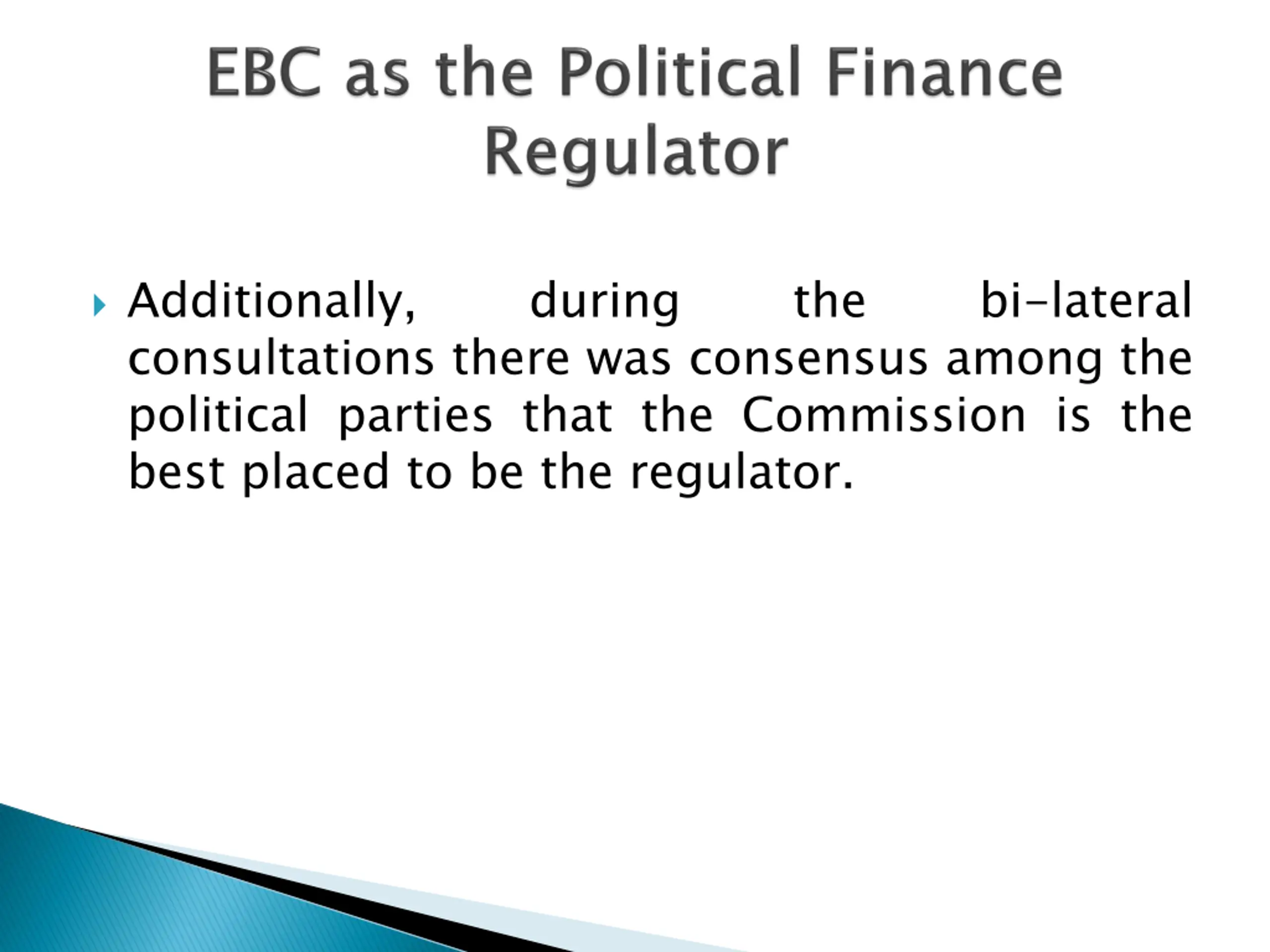 Additionally, consultations there was consensus among the political parties that the Commission is the best placed to be the regulator. during the bi-lateral