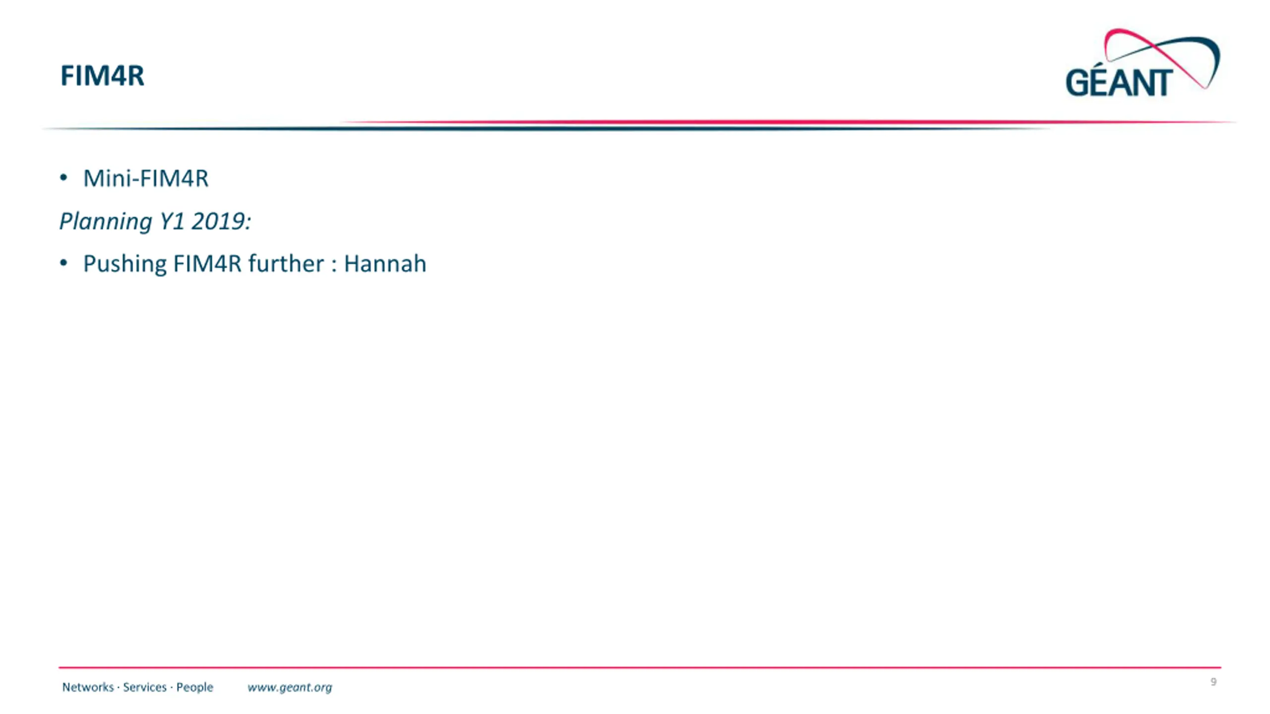 FIM4R Mini-FIM4R Planning Y1 2019: Pushing FIM4R further : Hannah 9 Networks Services People www.geant.org