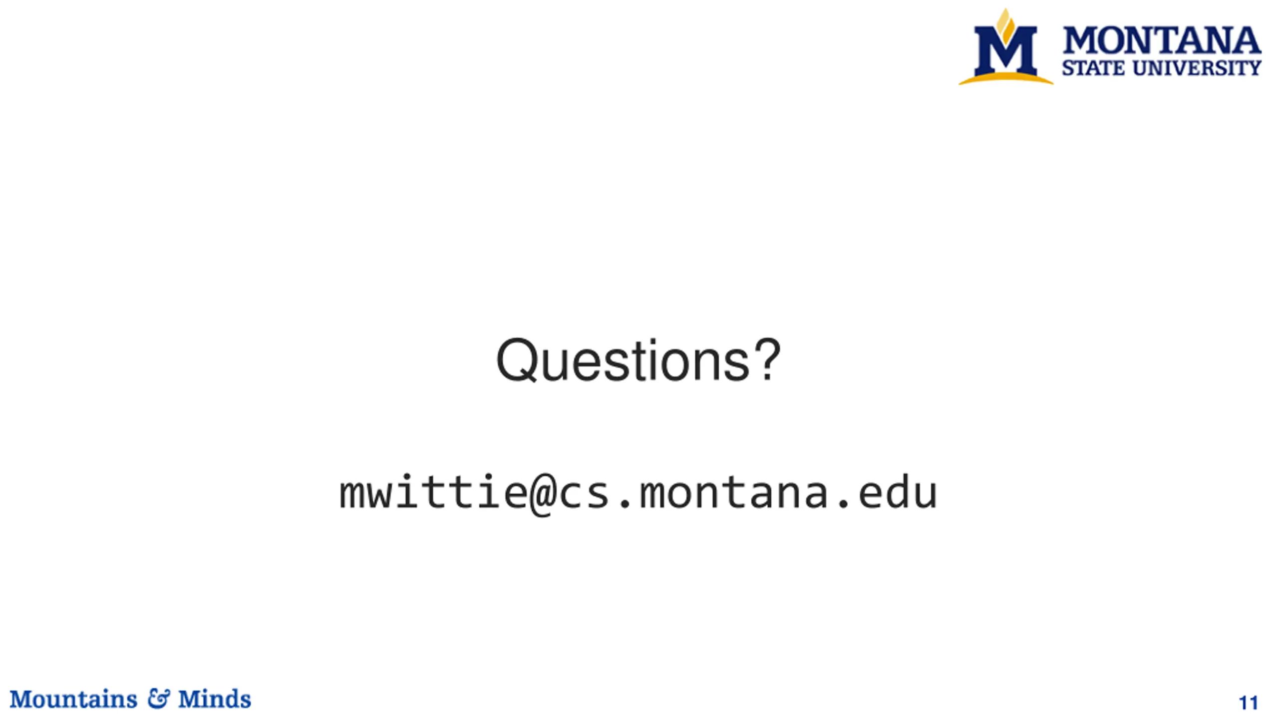 Questions? mwittie@cs.montana.edu 11