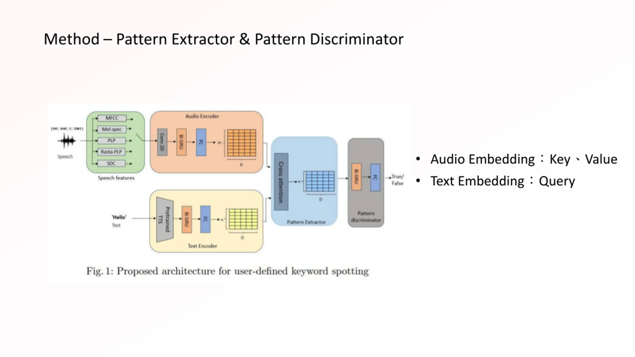 Method Pattern Extractor & Pattern Discriminator Audio Embedding Key Value Text Embedding Query