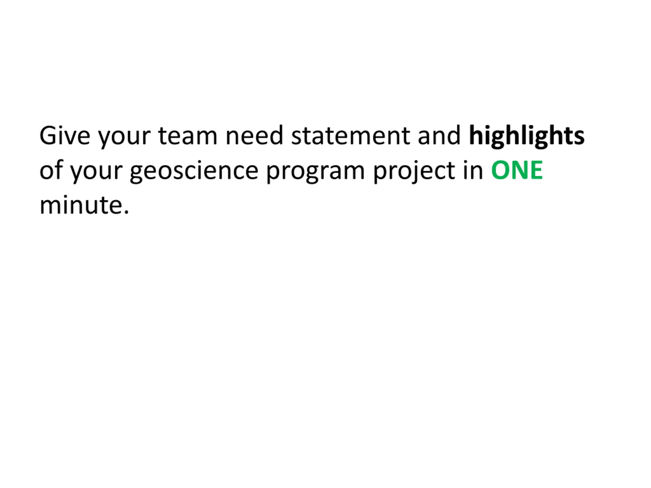 Give your team need statement and highlights of your geoscience program project in ONE minute.