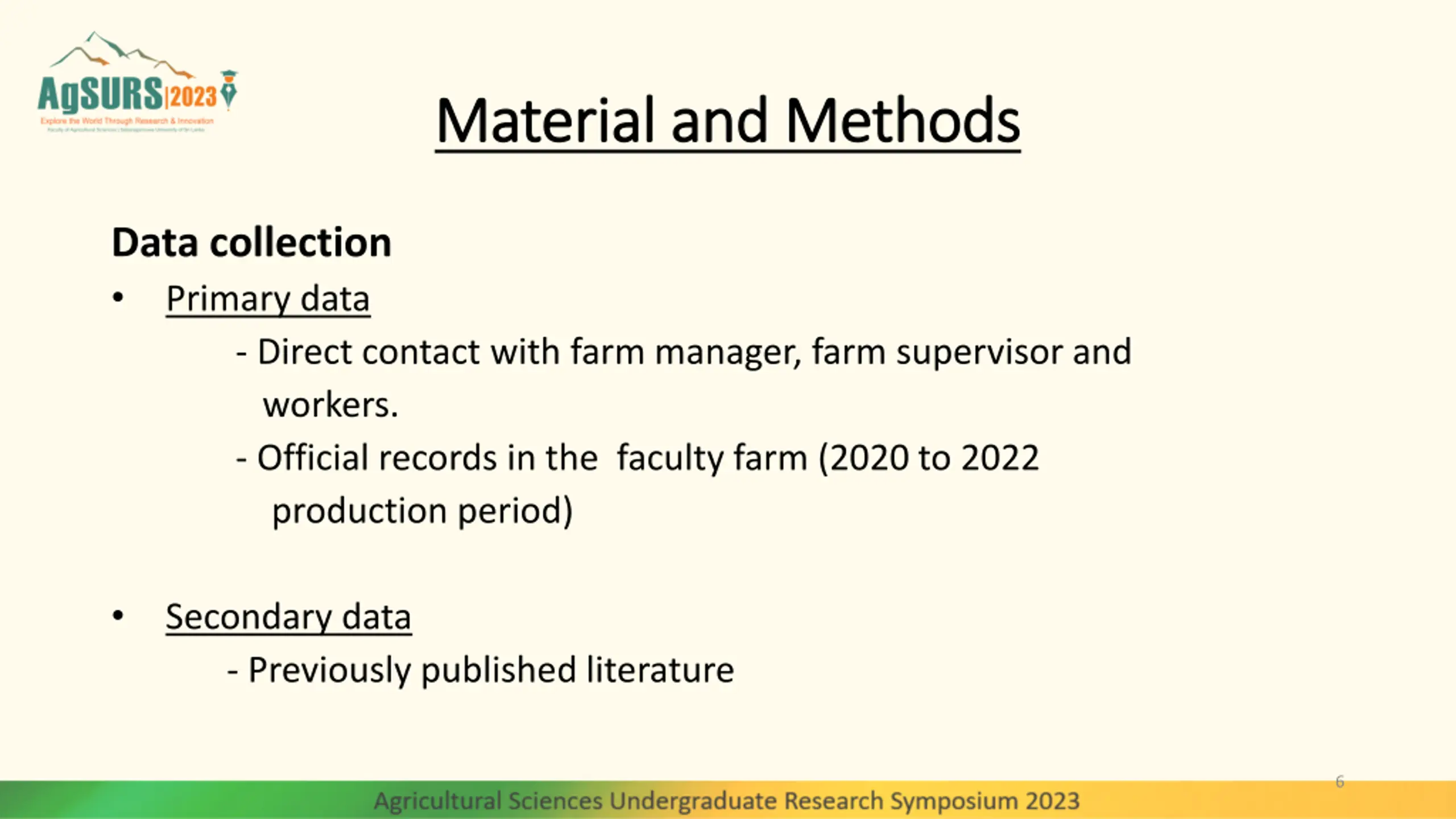Material and Methods Material and Methods Data collection Primary data - Direct contact with farm manager, farm supervisor and workers. - Official records in the faculty farm (2020 to 2022 production period) Secondary data - Previously published literature 6