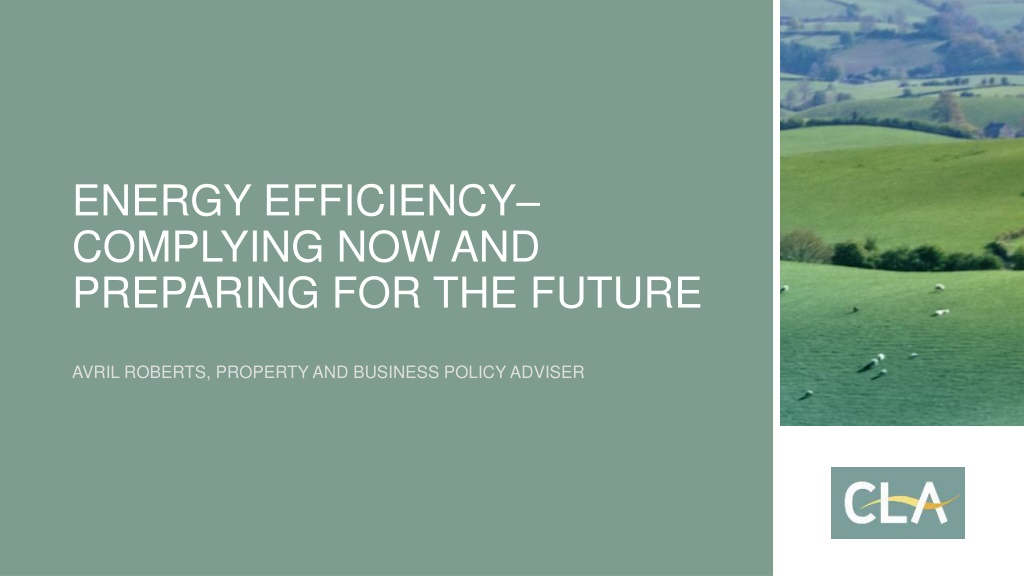 ENERGY EFFICIENCY COMPLYING NOW AND PREPARING FOR THE FUTURE AVRIL ROBERTS, PROPERTY AND BUSINESS POLICY ADVISER