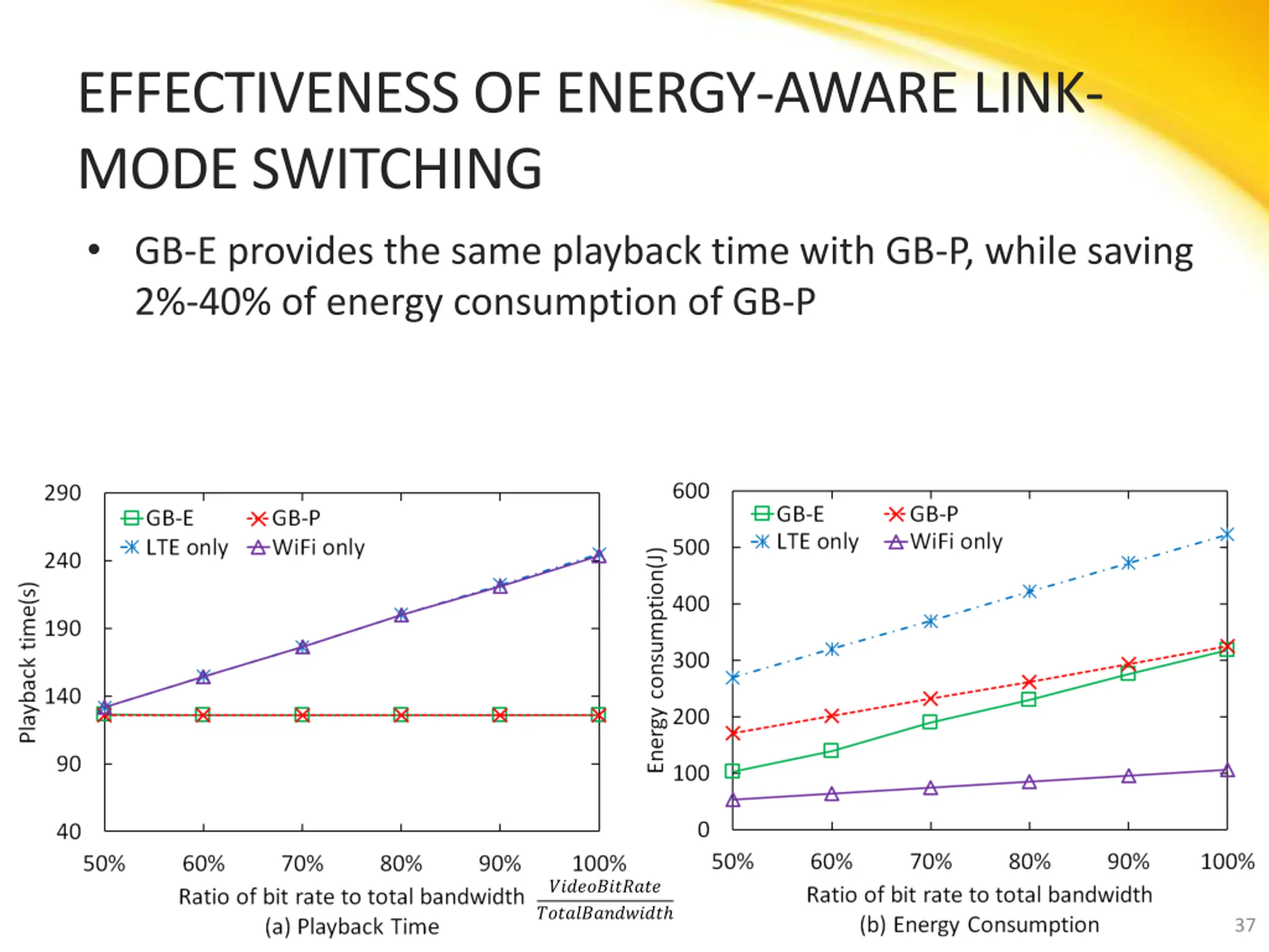 EFFECTIVENESS OF ENERGY-AWARE LINK- MODE SWITCHING GB-E provides the same playback time with GB-P, while saving 2%-40% of energy consumption of GB-P ???????????? ????????????? 37