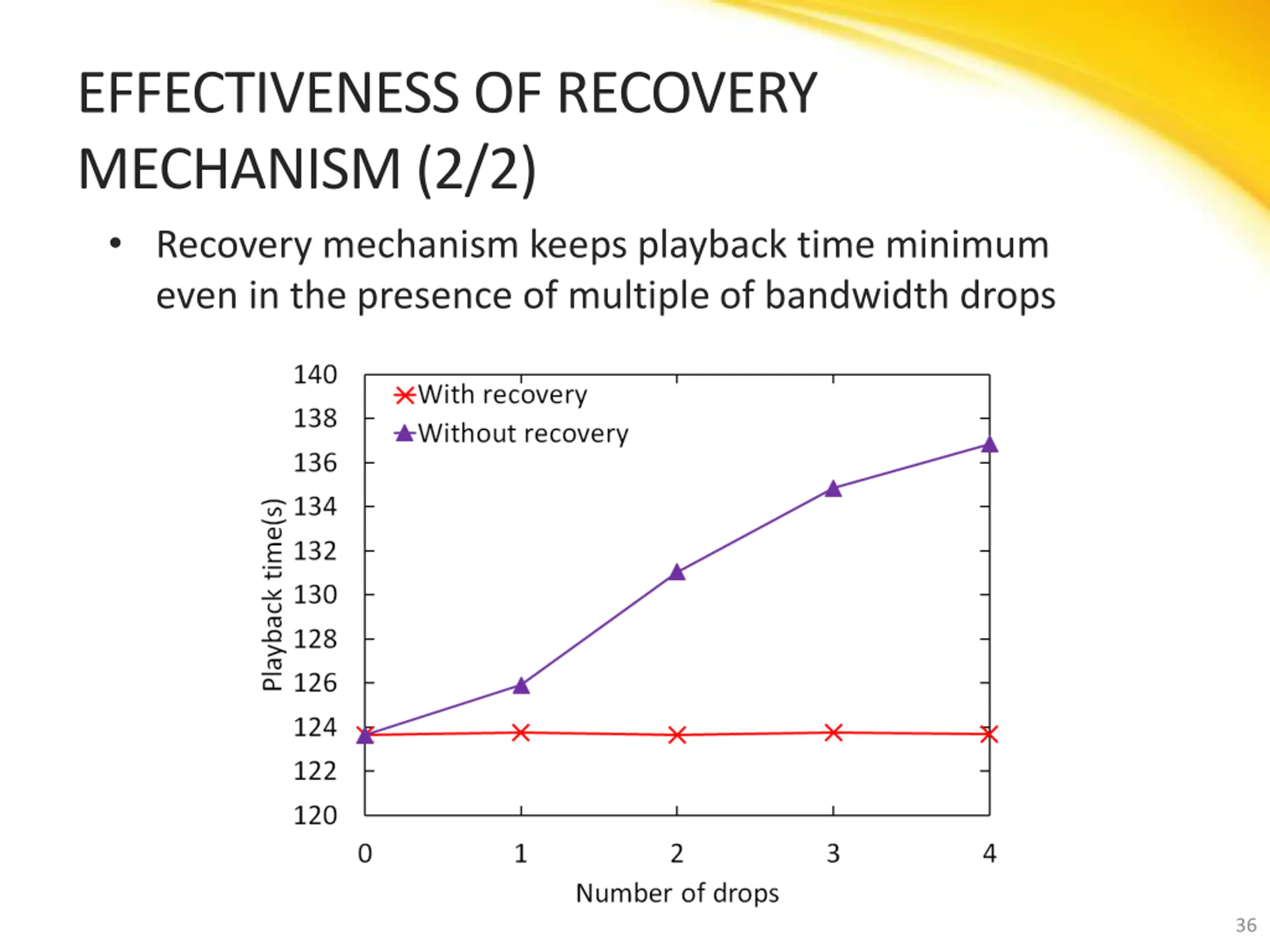 EFFECTIVENESS OF RECOVERY MECHANISM (2/2) Recovery mechanism keeps playback time minimum even in the presence of multiple of bandwidth drops 36