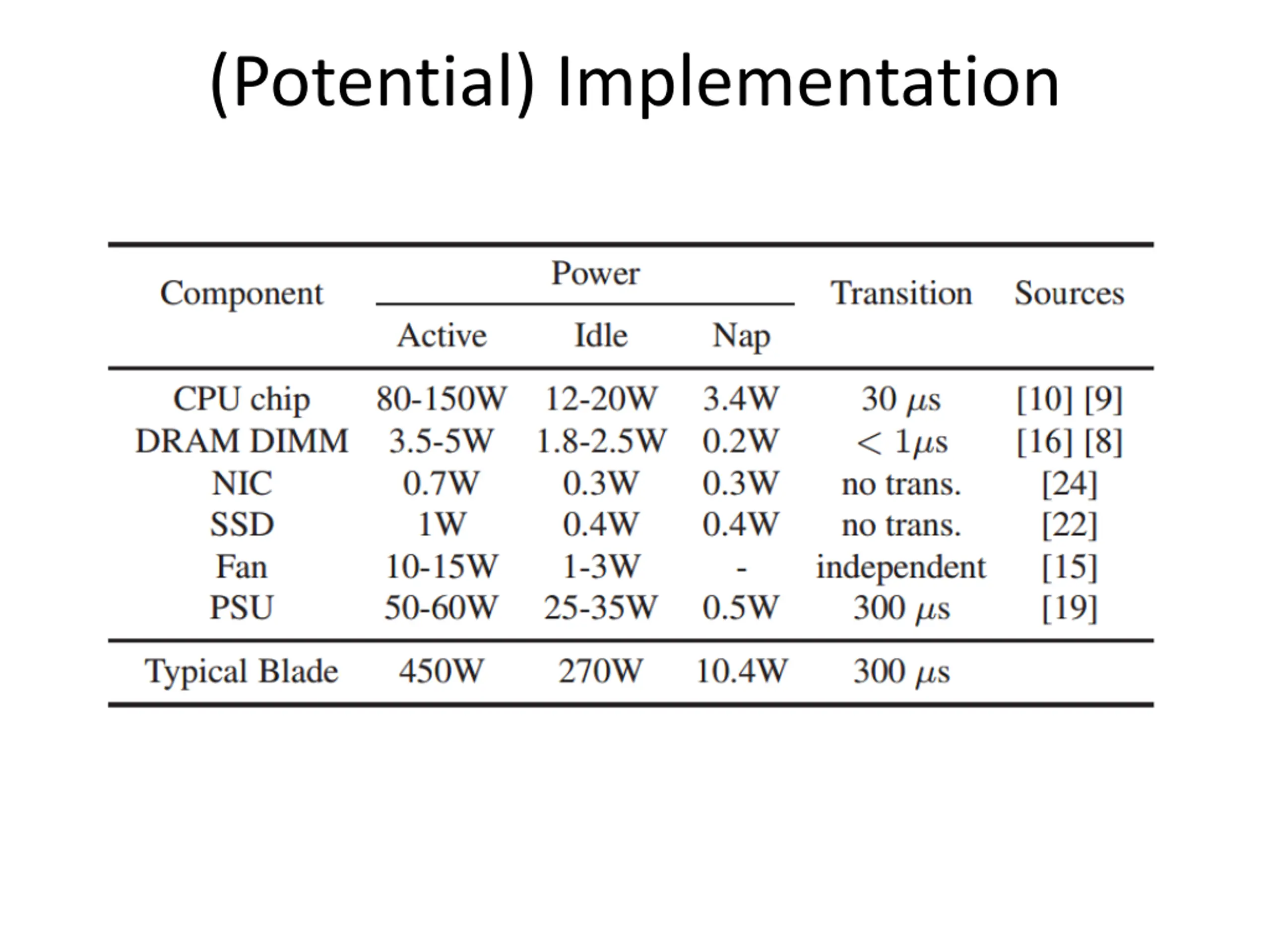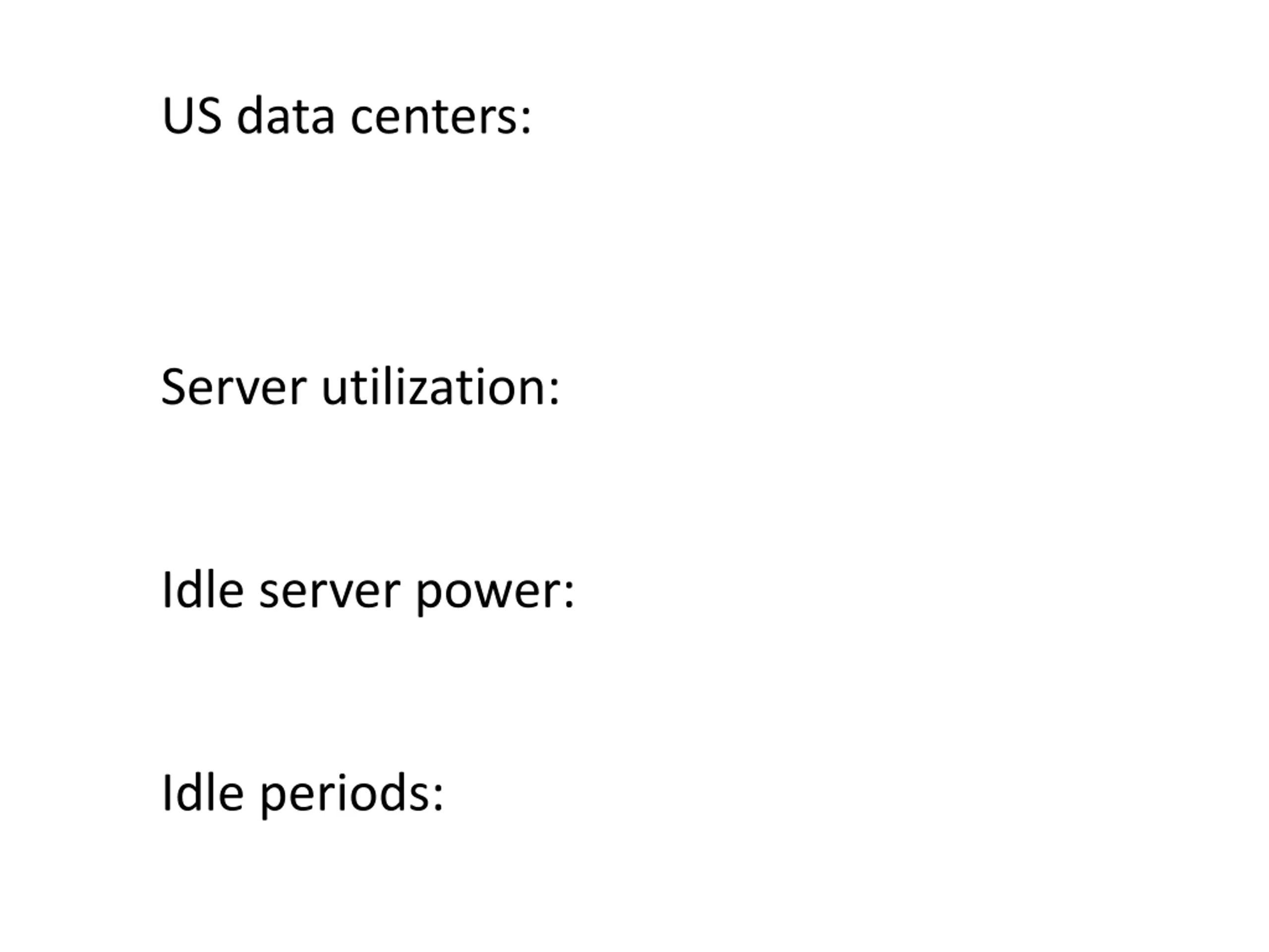 US data centers: 100 billion kWh by 2011 ?? $$ Server utilization: <30% Idle server power: 60% of peak Idle periods: ~seconds why important?