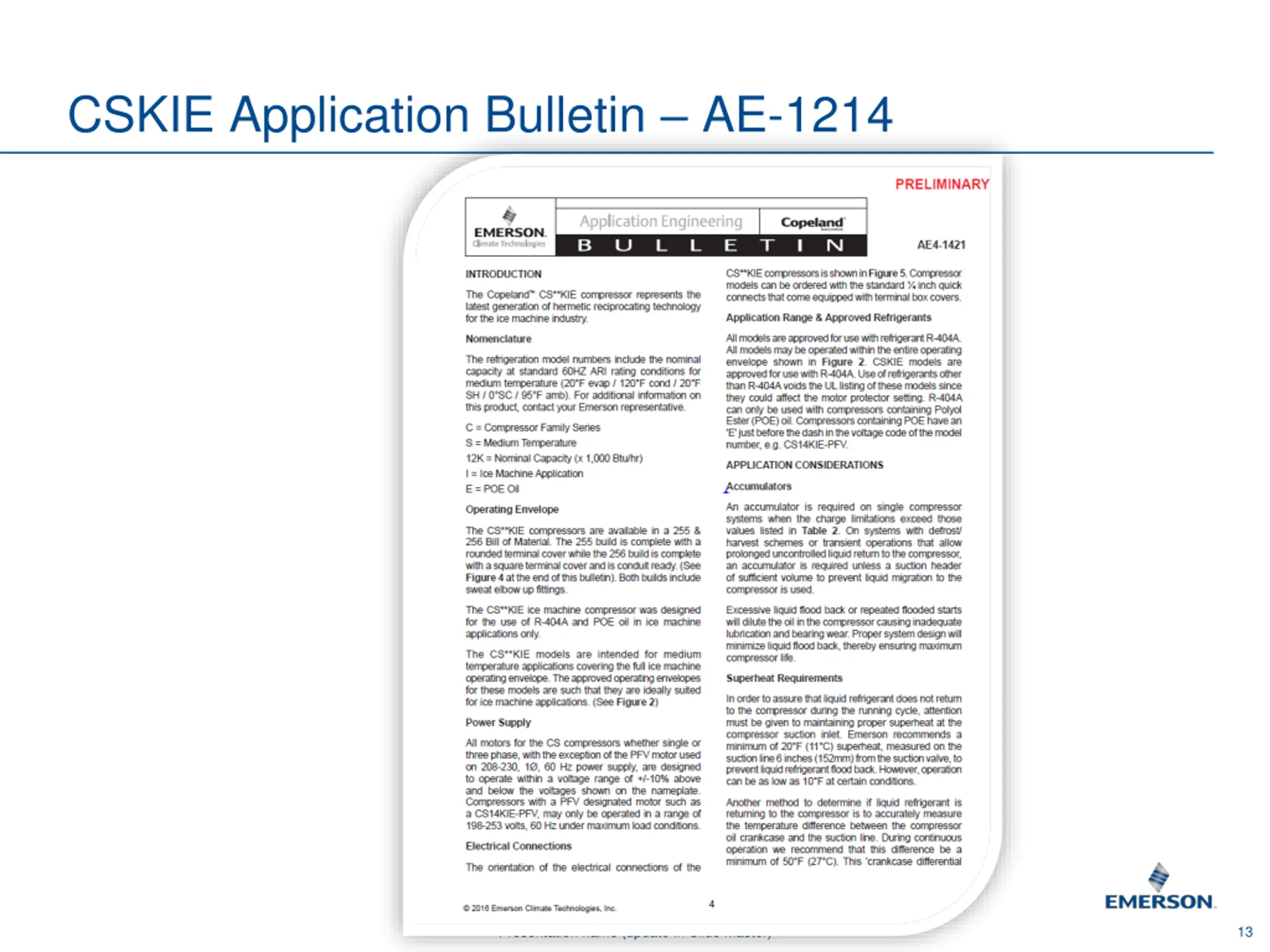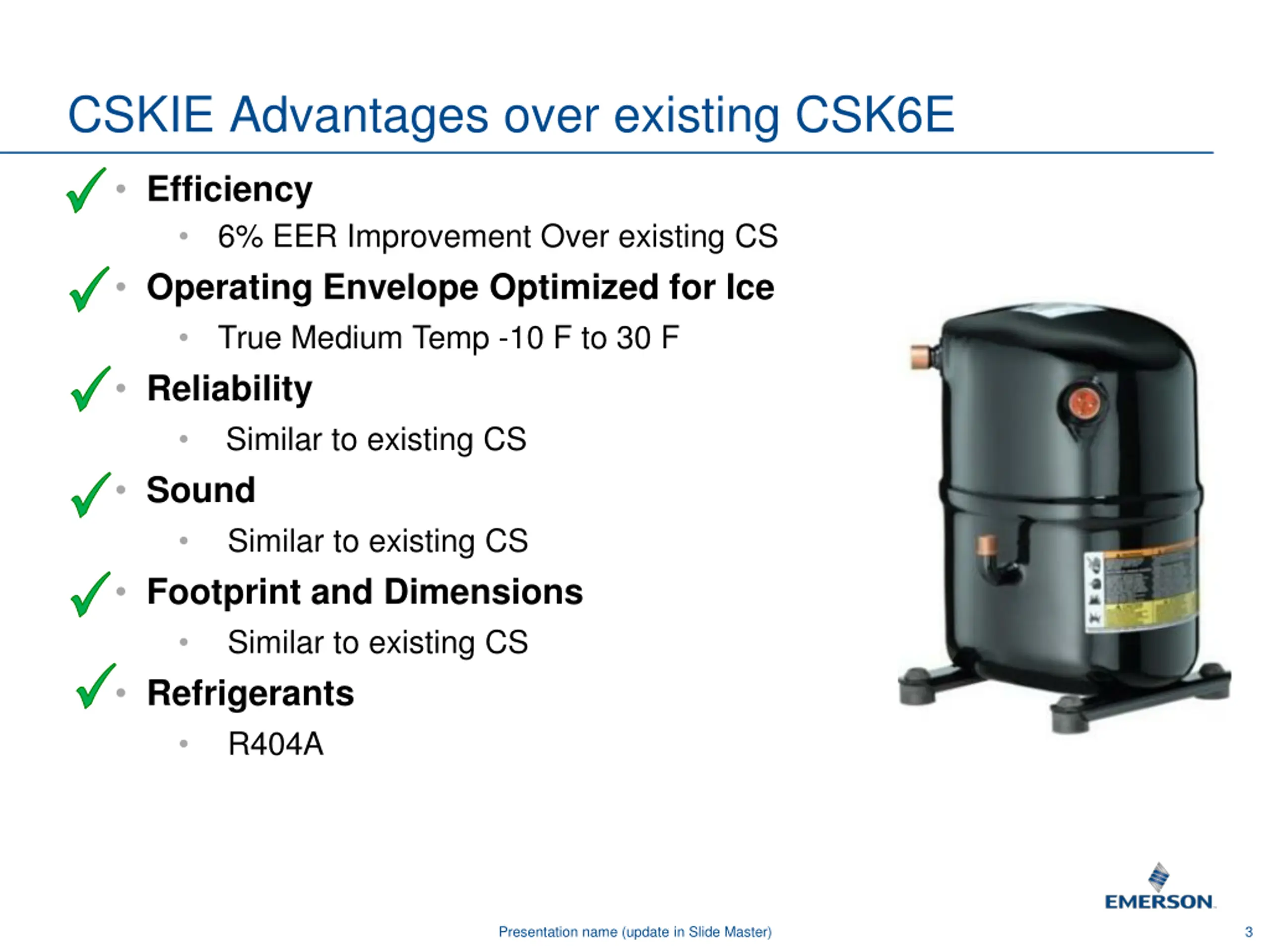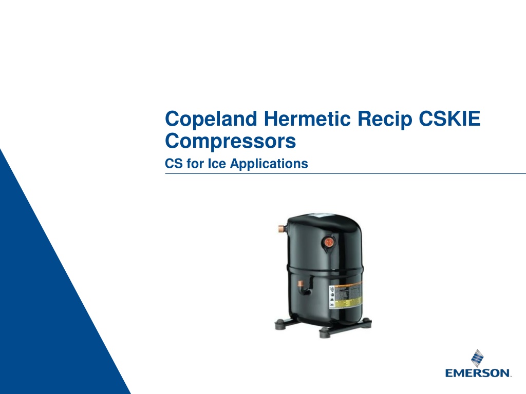 Copeland Hermetic Recip CSKIE Compressors CS for Ice Applications Presentation name (update in Slide Master) 1