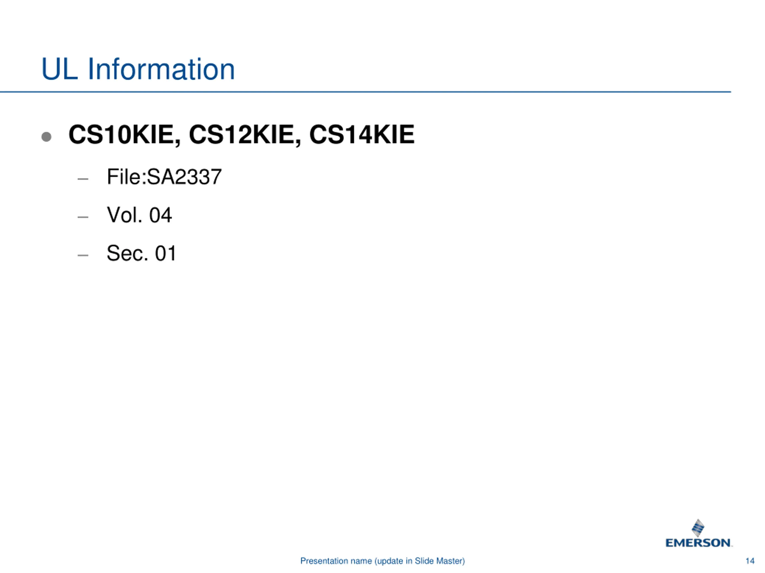 UL Information CS10KIE, CS12KIE, CS14KIE File:SA2337 Vol. 04 Sec. 01 Presentation name (update in Slide Master) 14