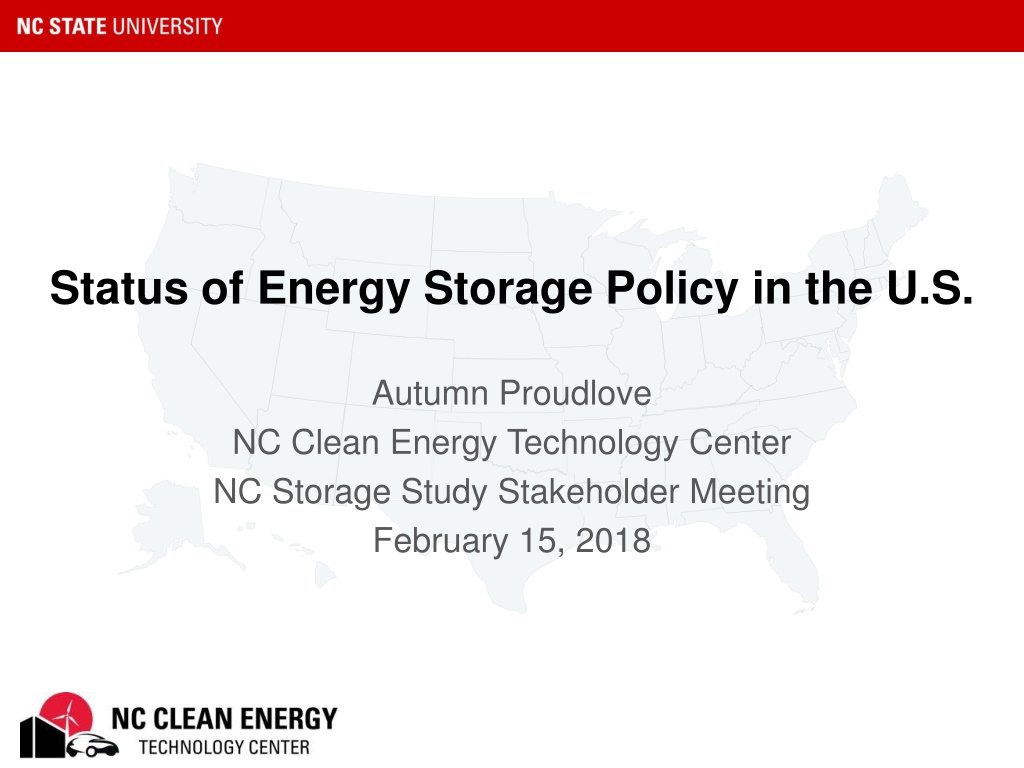 Status of Energy Storage Policy in the U.S. Autumn Proudlove NC Clean Energy Technology Center NC Storage Study Stakeholder Meeting February 15, 2018