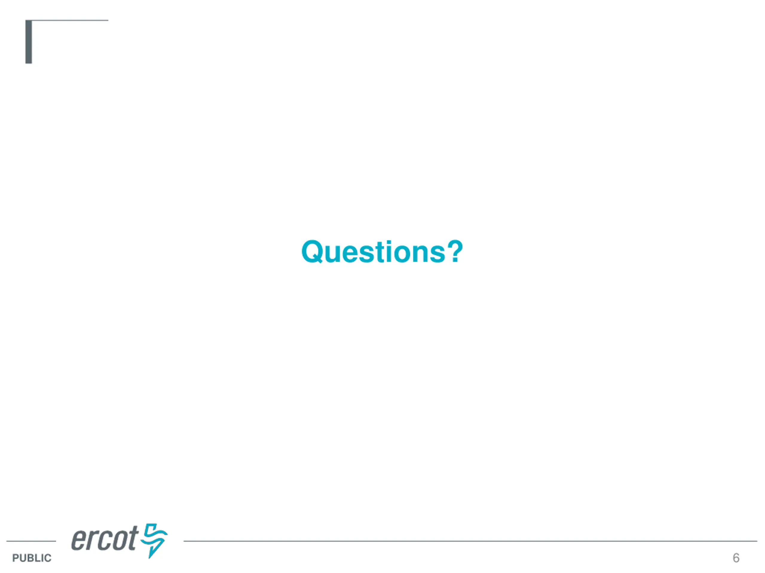 Example Under Performance Energy Storage Resource (Under Generation) Energy Storage Resource (Over Consumption) AABP (BP + RegUp) = (15+3) 18MW AABP (BP - RegDn) = (-19 - 1) -20MW TGC (Telemetered Gen or Cons) 6MW TGC (Telemetered Gen or Cons) -36MW Tolerance: Min(MW, %): Tolerance: Min(MW, %): MW Limit (AABP - 3MW) 15MW MW Limit (AABP - 3MW) -23MW % Limit (AABP - Abs(AABP * .03)) 17.46MW % Limit (AABP - Abs(AABP * .03)) -20.6MW 9MW or 2.25MWh 13MW or 3.25MWh Deviation (Tolerance-TGC) Deviation (Tolerance-TGC) RTSPP $20/MWh RTSPP $20/MWh BPDAMT (RTSPP * Deviation) $45 BPDAMT (RTSPP * Deviation) $65 AABP = Adjusted Aggregated Base Point RTSPP = Real-Time Settlement Point Price BPDAMT = Base Point Deviation Amount 5 PUBLIC