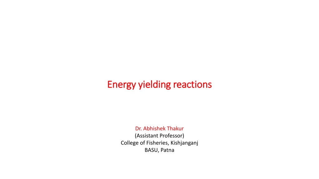Energy yielding reactions Energy yielding reactions Dr. Abhishek Thakur (Assistant Professor) College of Fisheries, Kishjanganj BASU, Patna
