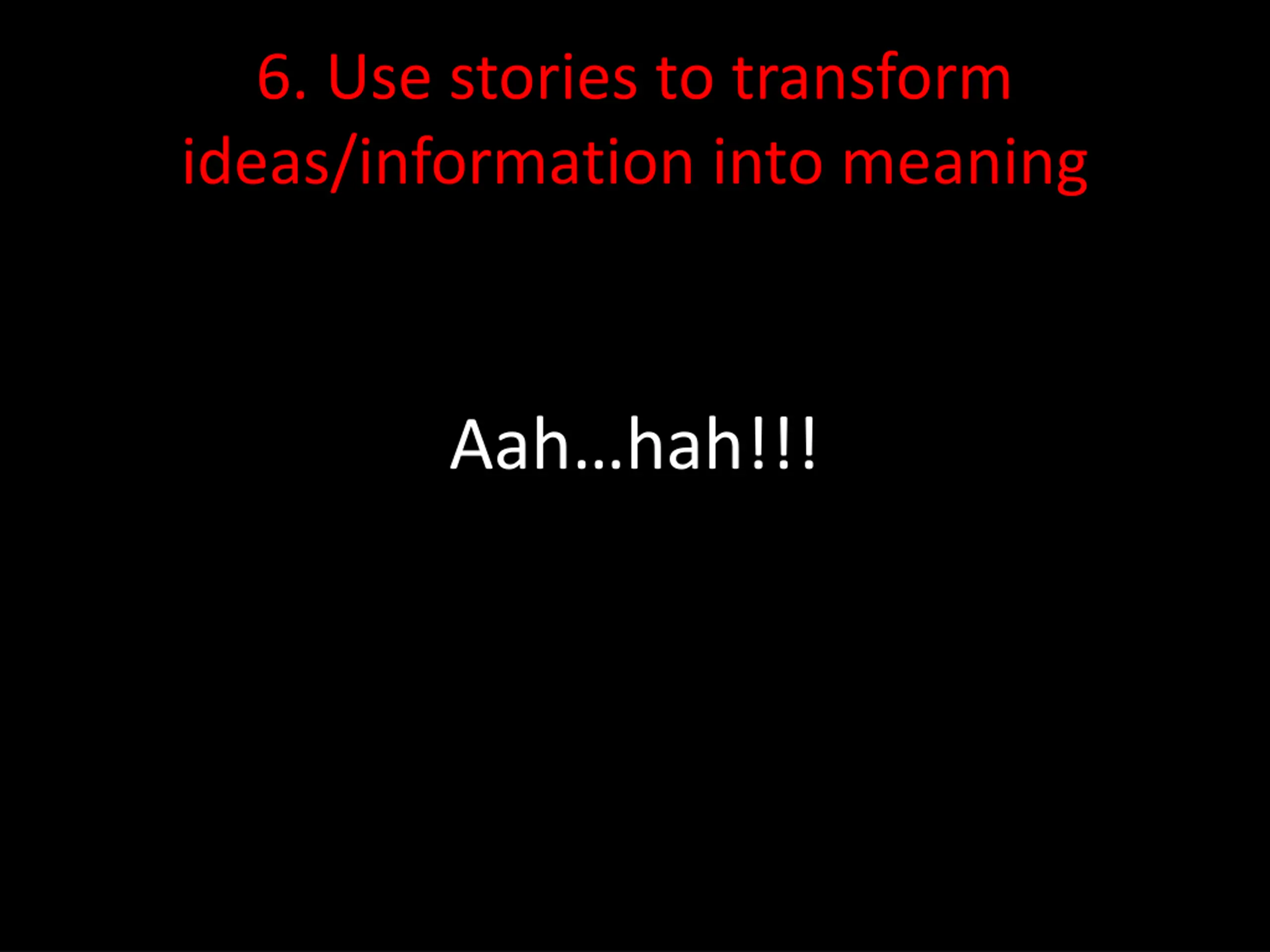 6. Use stories to transform ideas/information into meaning Aah hah!!!