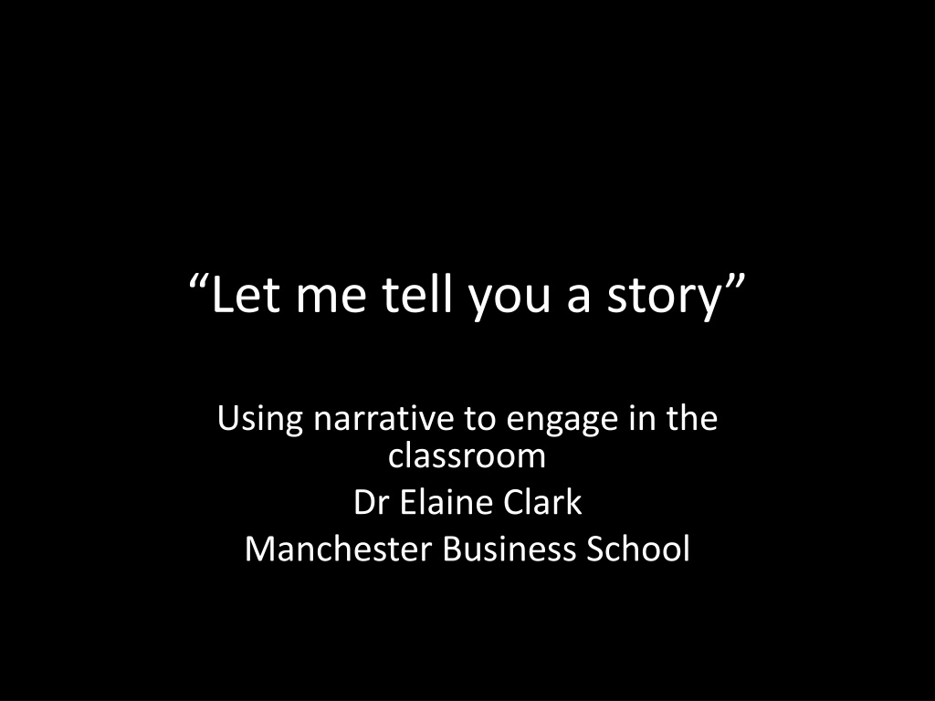 Let me tell you a story Using narrative to engage in the classroom Dr Elaine Clark Manchester Business School