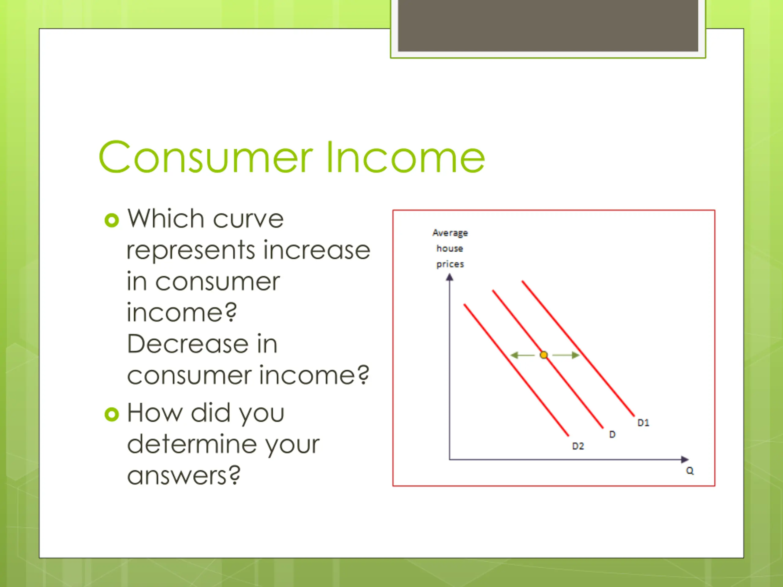 Consumer Income Which curve represents increase in consumer income? Decrease in consumer income? How did you determine your answers?