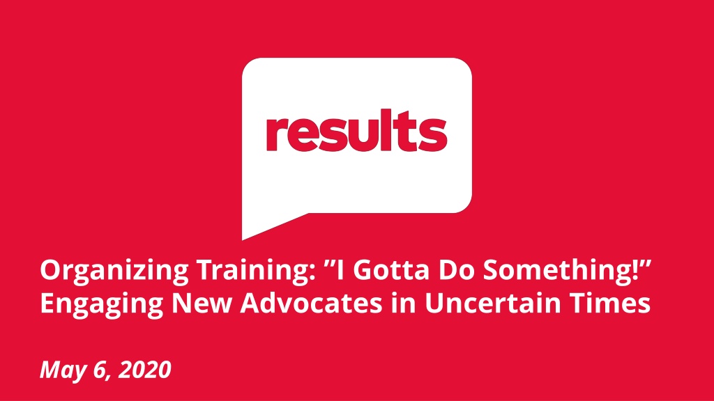 Resources Where you ll find this recording and resources: https://results.org/volunteers/training-webinars/ Organizing: https://results.org/orientation-and-advocacy- training/ Ladder of Engagement: https://results.org/wp- content/uploads/The-RESULTS-Ladder-of-Engagement-Jan- 2020.pdf. In GL Training Module 2 Engagement Process Chart: In these slides.