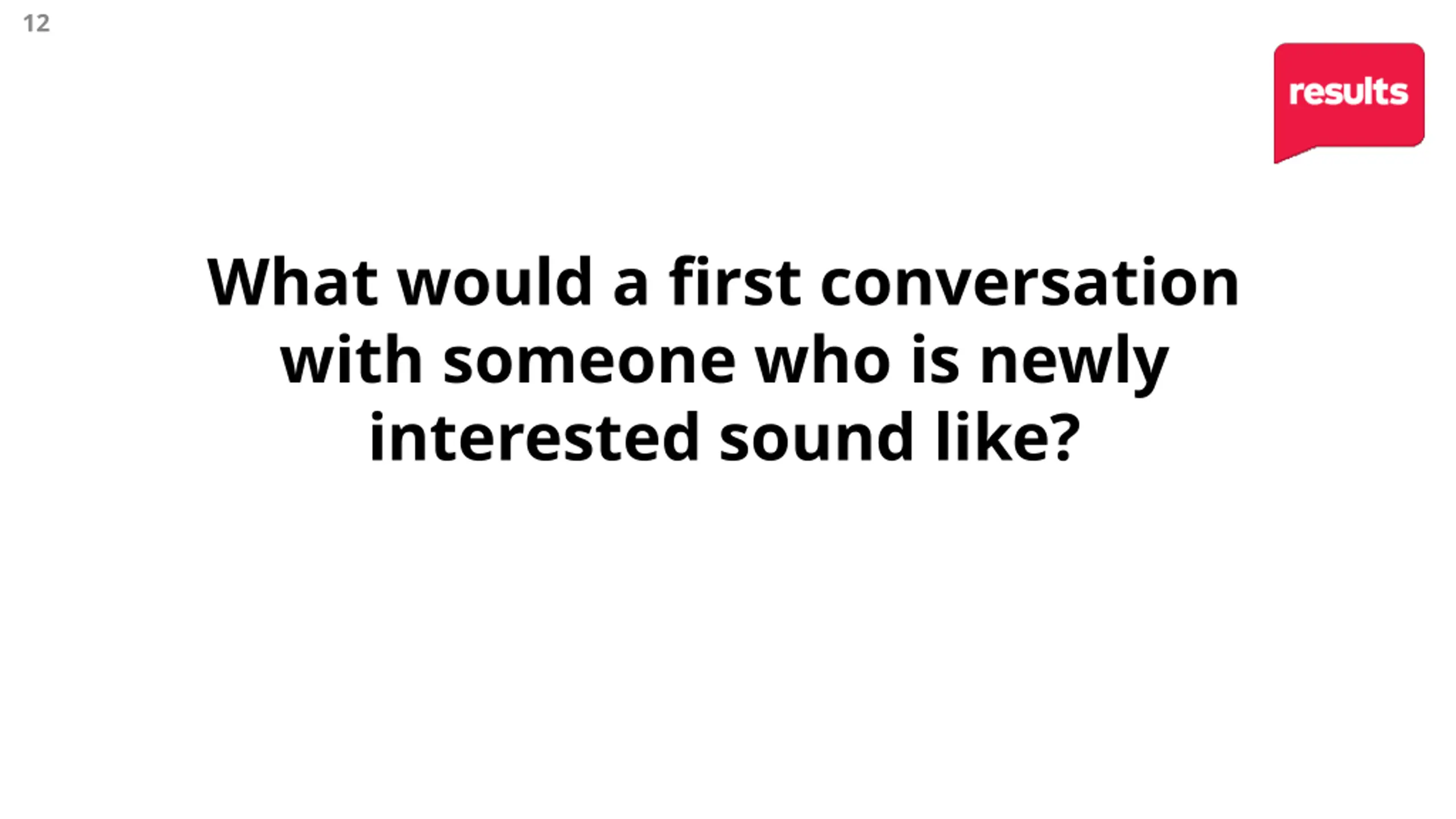 12 What would a first conversation with someone who is newly interested sound like?