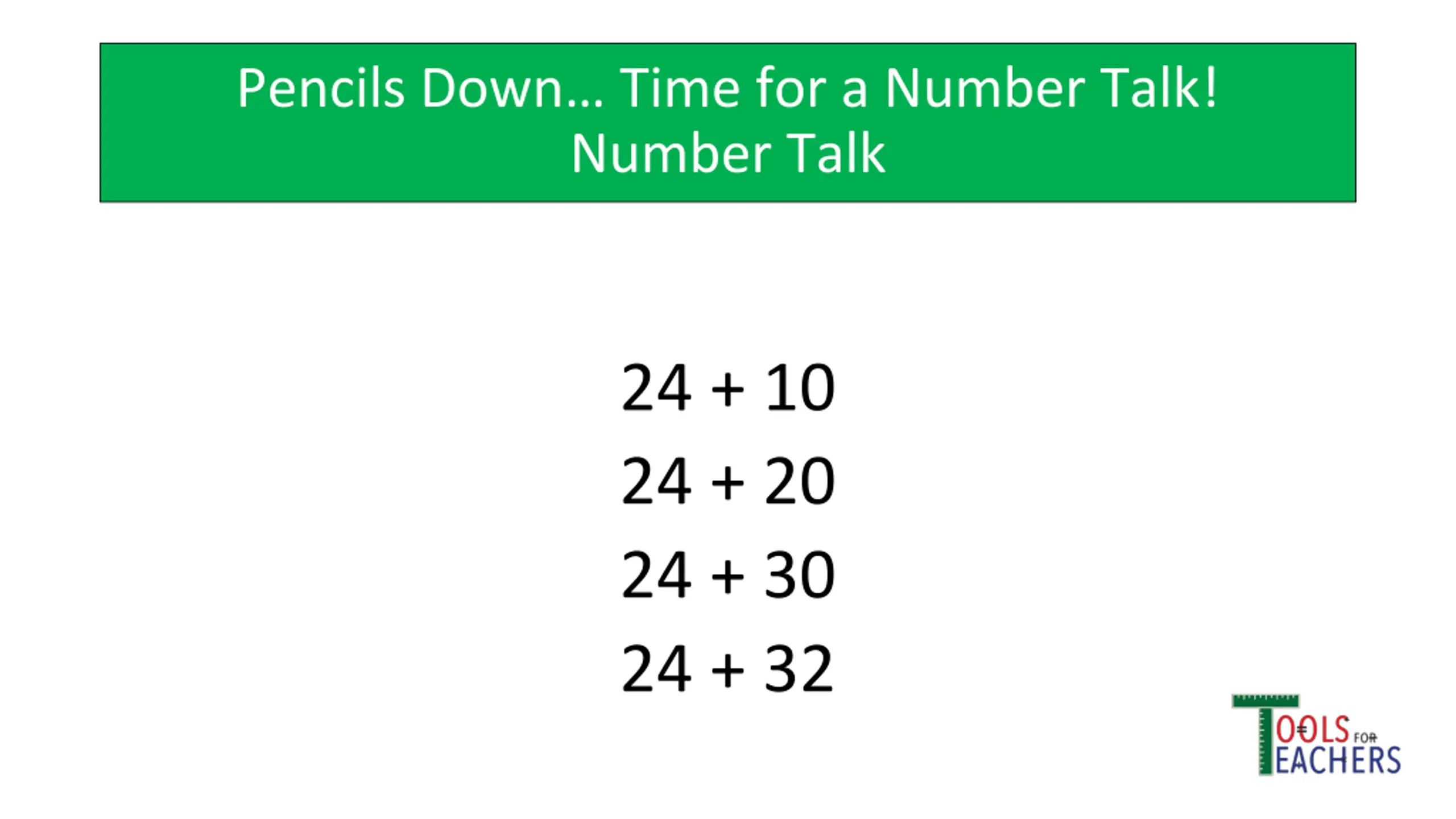 Pencils Down Time for a Number Talk! Number Talk 24 + 10 24 + 20 24 + 30 24 + 32