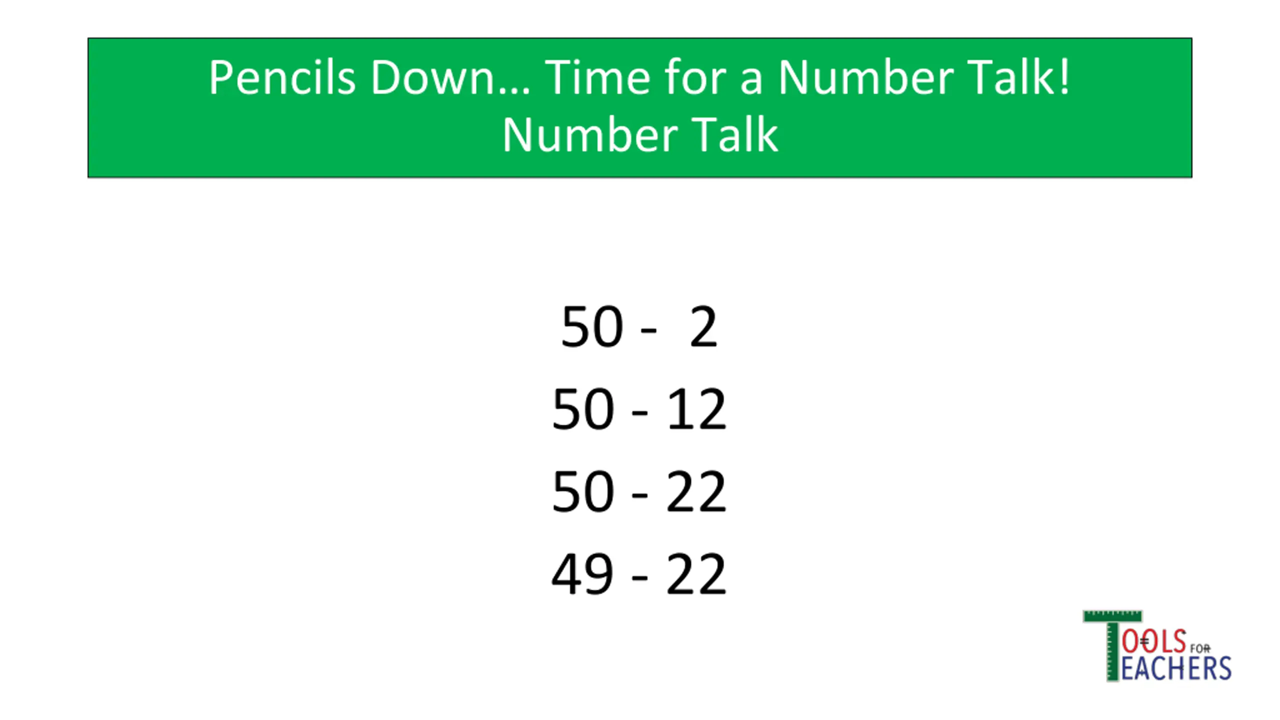 Pencils Down Time for a Number Talk! Number Talk 50 - 2 50 - 12 50 - 22 49 - 22