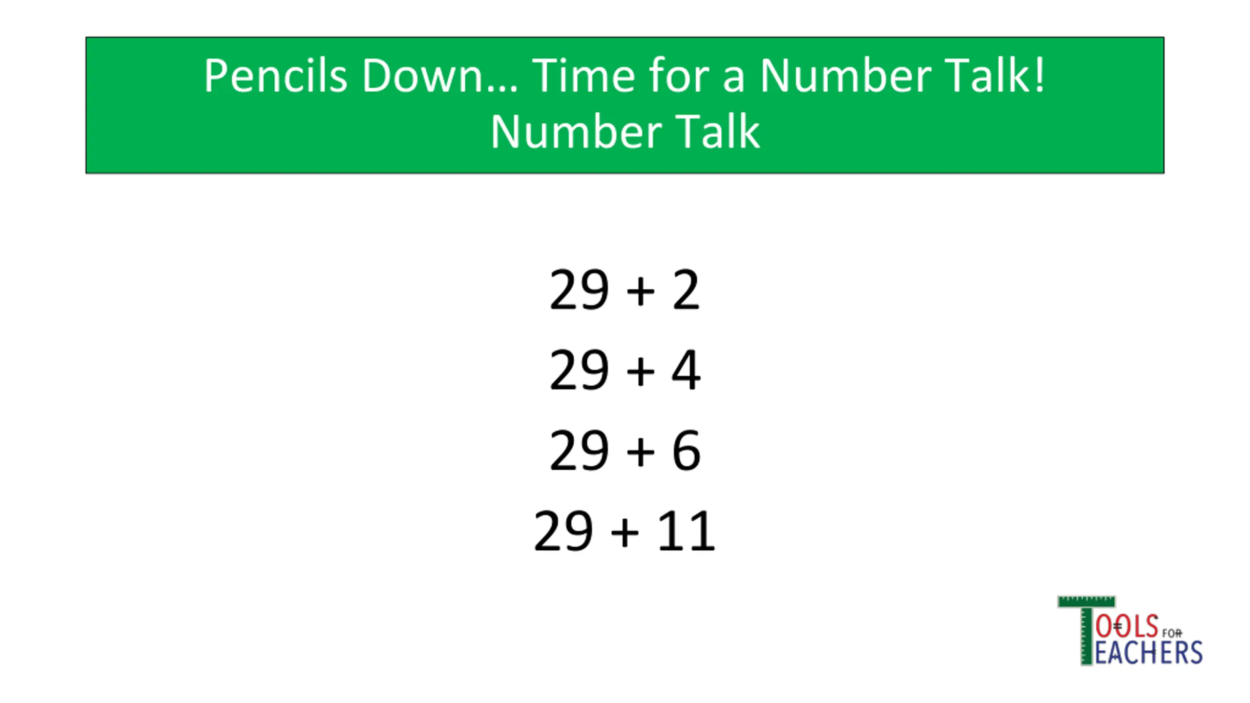 Pencils Down Time for a Number Talk! Number Talk 29 + 2 29 + 4 29 + 6 29 + 11