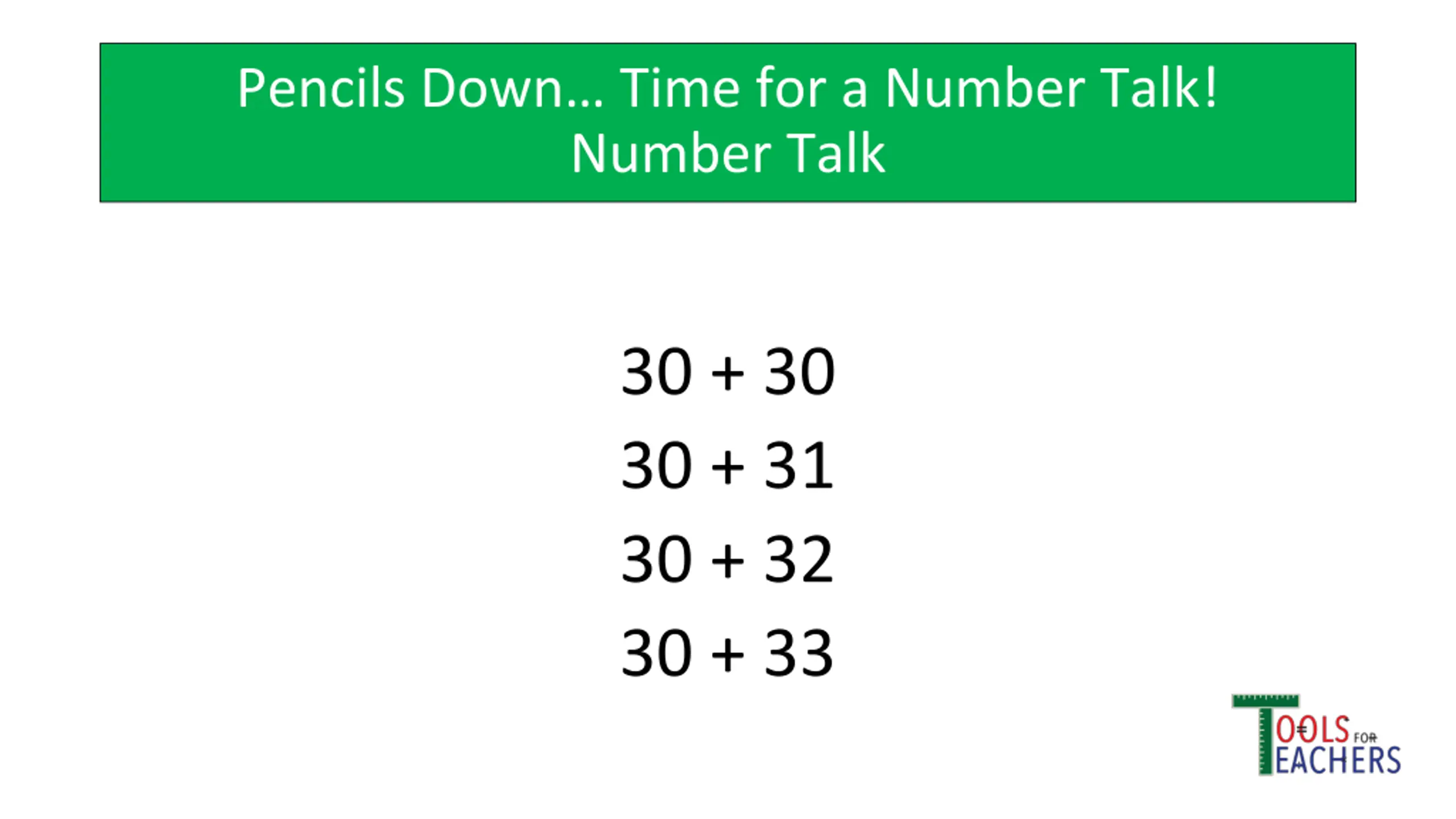 Pencils Down Time for a Number Talk! Number Talk 30 + 30 30 + 31 30 + 32 30 + 33