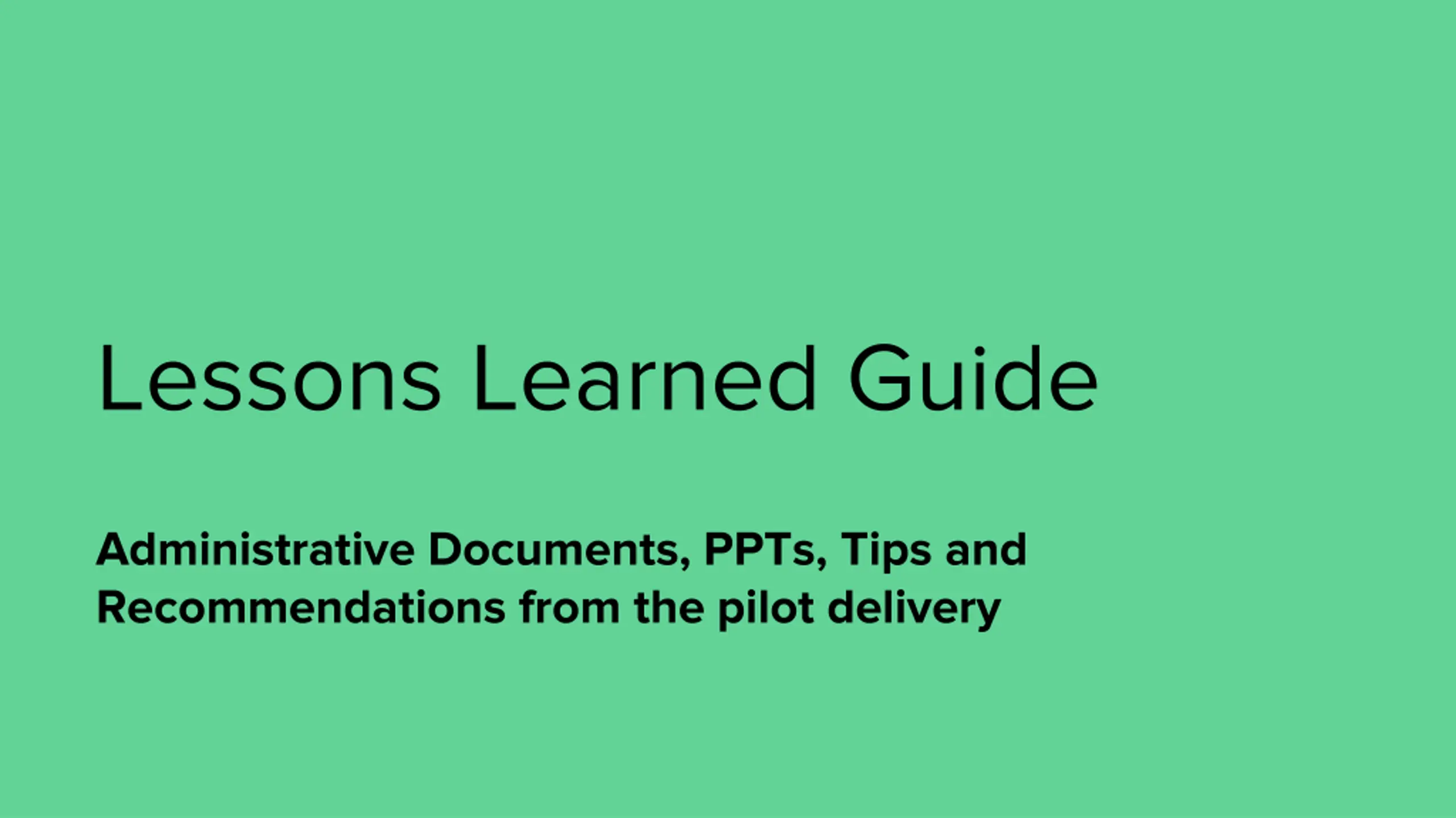 Lessons Learned Guide Administrative Documents, PPTs, Tips and Recommendations from the pilot delivery