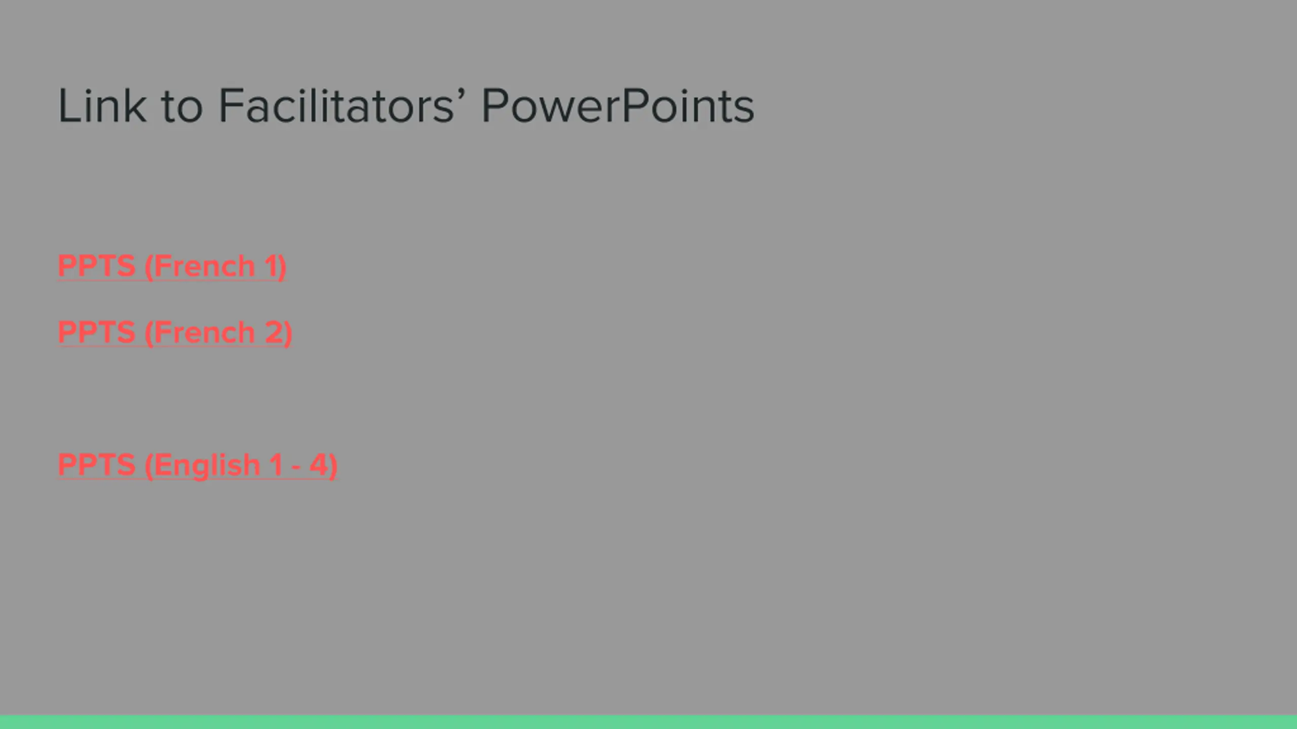Link to Facilitators PowerPoints PPTS (French 1) PPTS (French 2) PPTS (English 1 - 4)