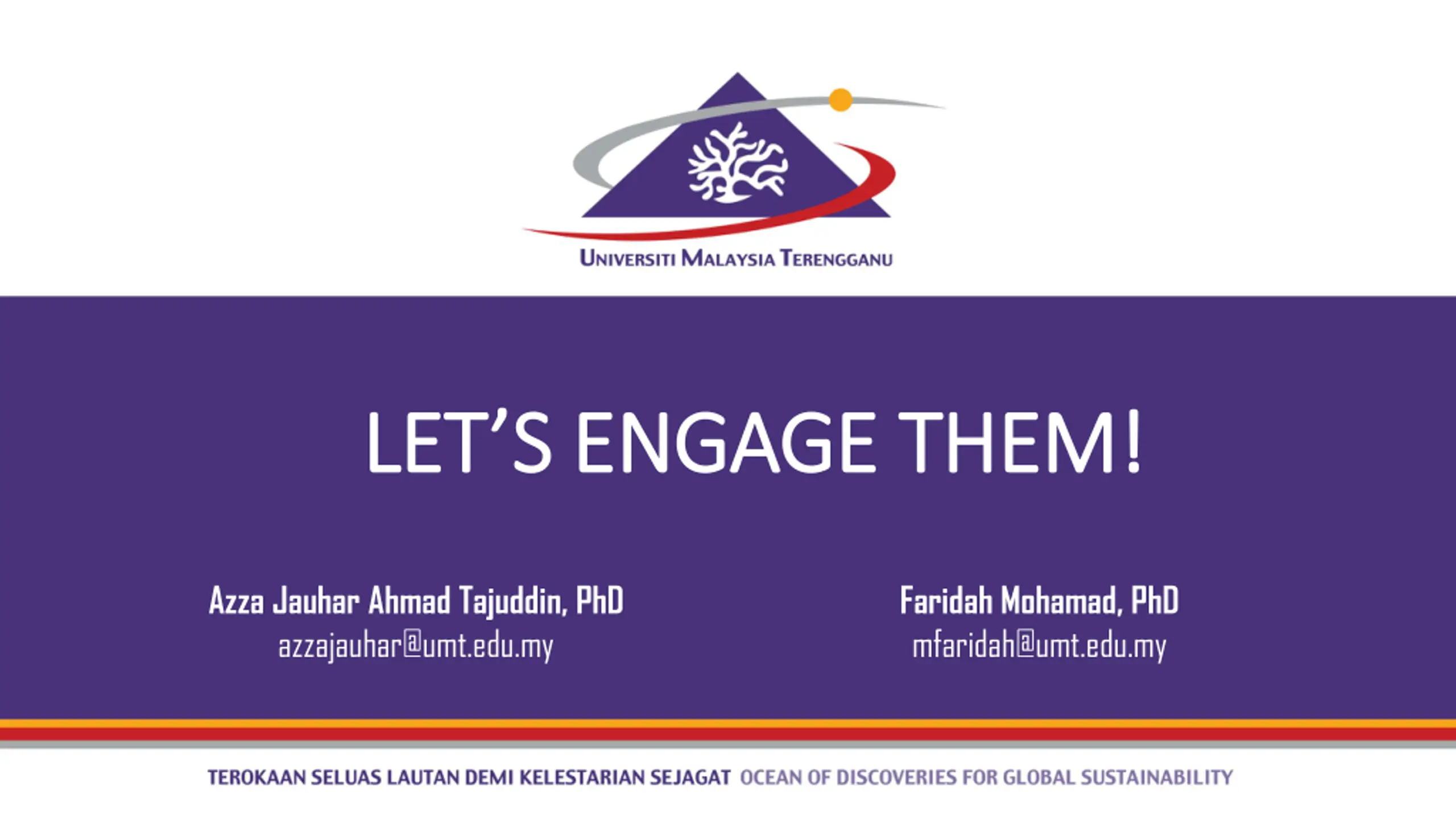 LETS ENGAGE THEM! LET S ENGAGE THEM! Azza Jauhar Ahmad Tajuddin, PhD azzajauhar@umt.edu.my Faridah Mohamad, PhD mfaridah@umt.edu.my