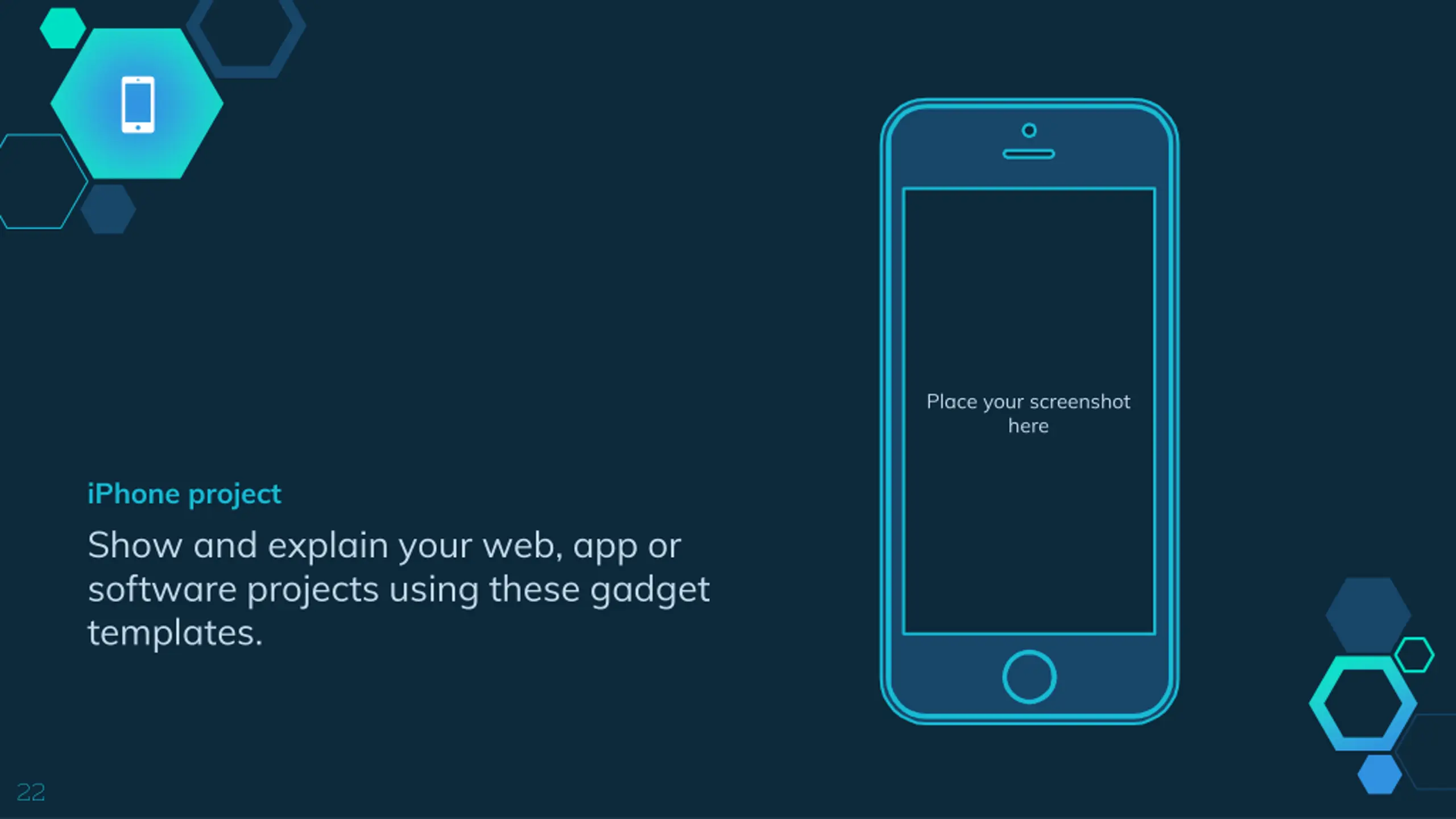 Place your screenshot here iPhone project Show and explain your web, app or software projects using these gadget templates. 22