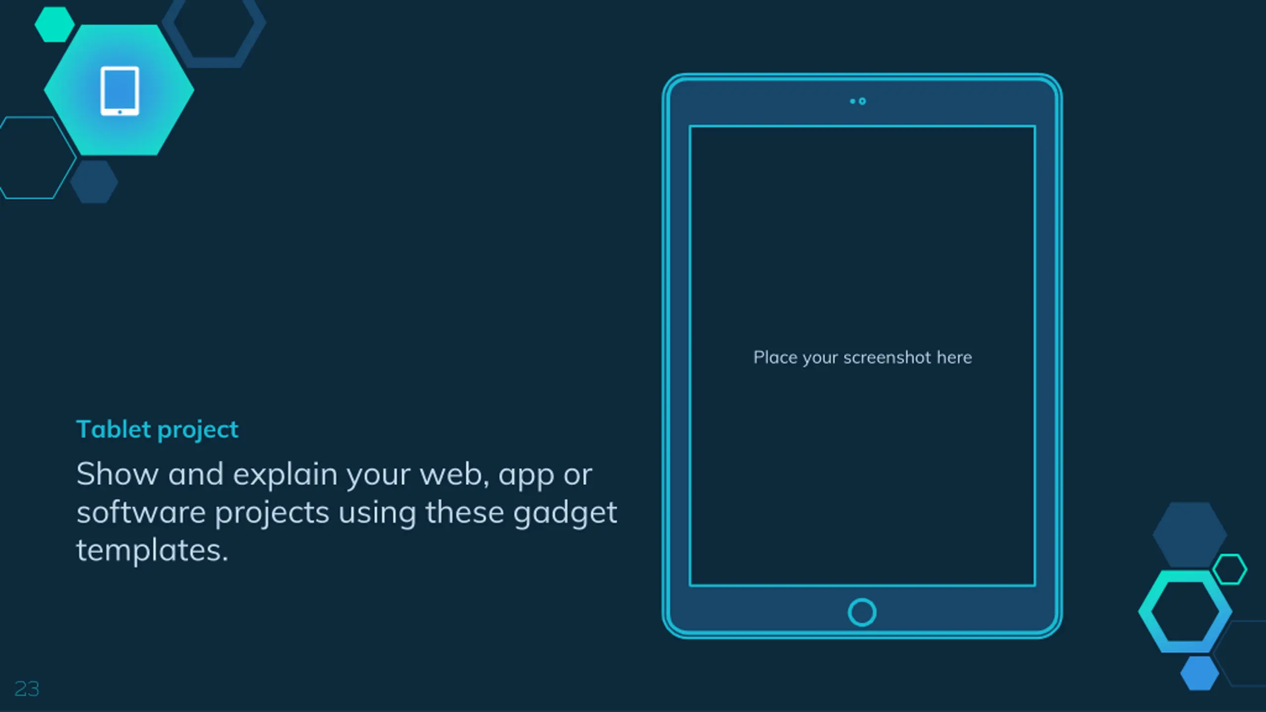Place your screenshot here Tablet project Show and explain your web, app or software projects using these gadget templates. 23