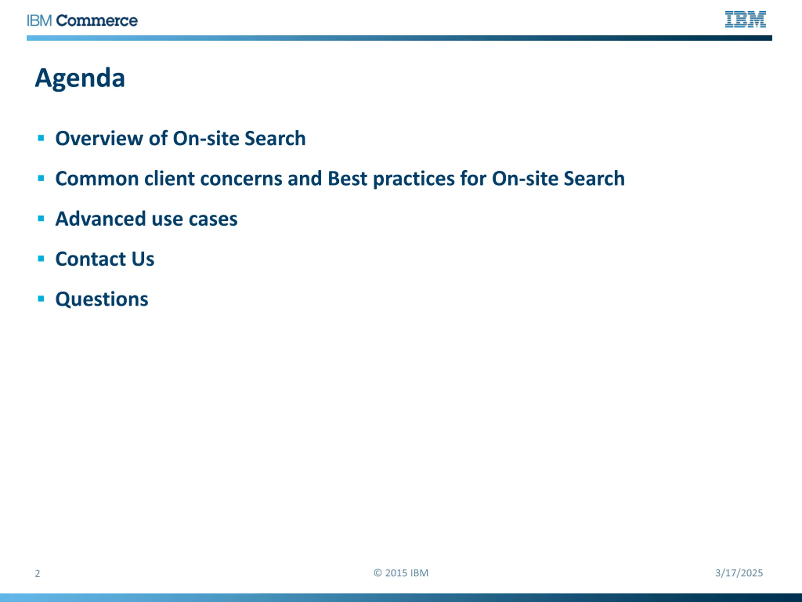 Agenda Overview of On-site Search Common client concerns and Best practices for On-site Search Advanced use cases Contact Us Questions