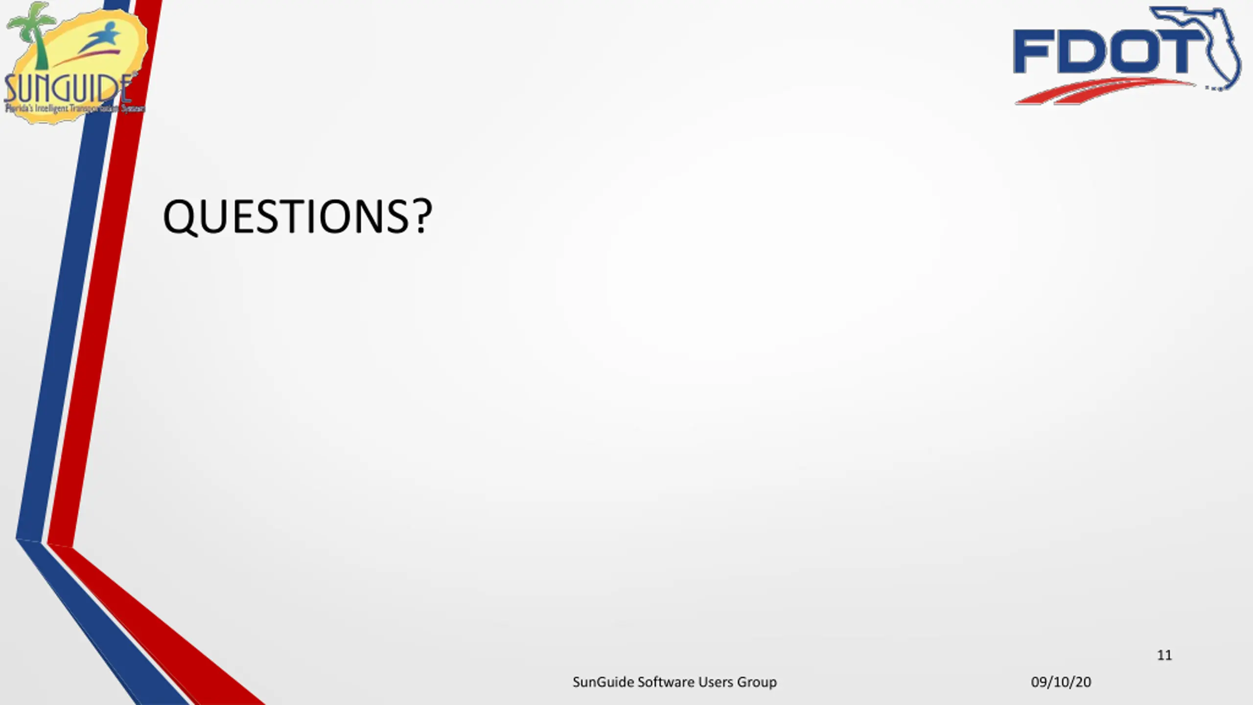 QUESTIONS? 11 SunGuide Software Users Group 09/10/20