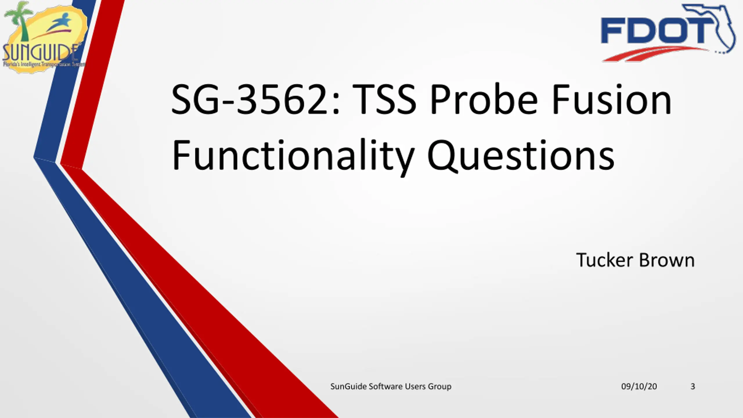 SG-3562: TSS Probe Fusion Functionality Questions Tucker Brown SunGuide Software Users Group 09/10/20 3