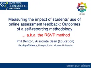 Edinburgh Feedback Inventory Short series of questions on what matters in feedback Students think feedback is important (mean = 4.1 SD = 1.0) But they are not very happy with their current feedback (mean = 2.81, SD = 1.0) 650 participants responded over two years